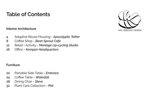 This coffee table design focuses on reacting to the principles of Scandinavian Modernism and adapting them into a unique table that is both functional and sculptural. Inspired by the natural harmony and balance seen in Scandinavian design, the table seeks to mimic the flow of a waterfall by creating a continuous curved form that flows to the ground.