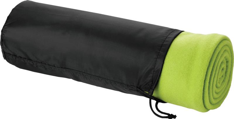 RPET polar fleece blanket suitable for indoor and outdoor use. Comes with a 190T RPET carry pouch with drawstring closure. Packed in a recycled polybag. Pouch size: length 34 cm, diameter 13 cm. 100% Recycled Polyester, 180 g/m2, 190T of 100% Recycled Polyester
