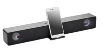 5.0 wireless stereo speaker in ABS with bamboo casing. Rechargeable Li-ion 2000 mAh battery included. Output data: 4 Ohm, 5Wx2. Playing time aprox. 4 hrs, charging time 3 hrs. Size 14x4,6x5,0 cm Print technique Pad printing*,L