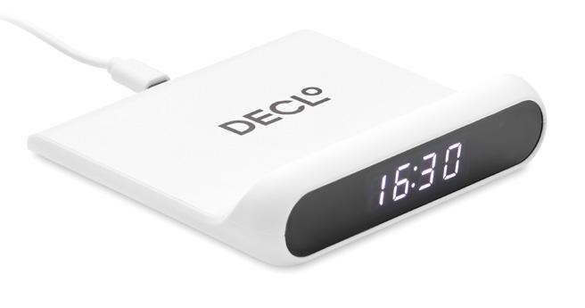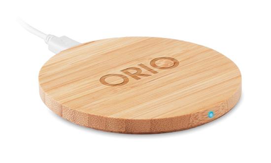 5.0 wireless speaker in ABS case and bamboo on top. It also has a built-in 10W wireless charger to charge your smartphone and 4000 mAh power bank. Output DC 9V/1.1A. Size Ø11,4x4,2 cm Print technique Pad printing*,L