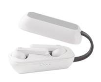 Recycled ABS True Wireless Stereo (TWS) 5.0 wireless stereo earbuds with 40 mAh battery built-in. Playing time approx. 4 hours. Including a micro USB charging cable and a 300 mAh charging station. Size 6,1x4x2,8 cm