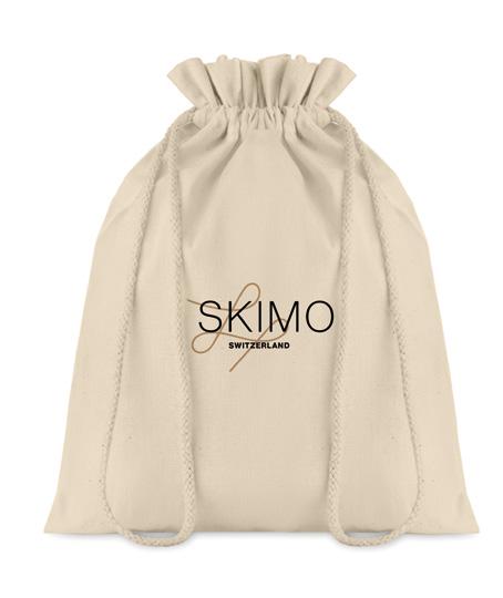 Medium gift cotton draw cord bag. 105 gr/m². Size 25x32 cm Print technique Screen printing,T1,TD