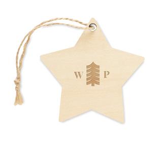 Wood (80% poplar wood and 20% weed wood) decorated star with 5 LED light and hanging cord. Including 1 CR2032 battery. Size 7,5x7,5x2 cm