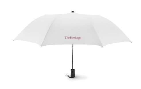 21 inch 2 fold auto open umbrella in 190T pongee with zinc plated steel shaft, ribs and tips. Black rubberised ABS handle. Includes matching pouch. Manual closure. Size Ø93x47 cm Print technique Screen printing,T1,TD