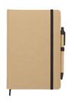 A5 portfolio in RPET with faux leather details. Replaceable A5 notebook with hard cork cover. Case bound. 128 recycled paper lined pages (64 sheets). Pen holder. 2 cardholders and one big compartment. Elastic closure strap with metal detail. Size 17,5x2x23 cm Print technique Screen printing,T1,TD,TR