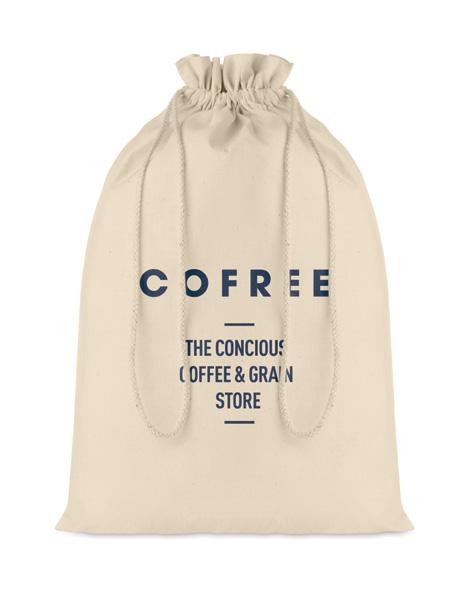 Medium gift cotton draw cord bag. Size approx. 25 x 32cm. 105 gr/m². Size 25x32 cm Print technique Screen printing,T1,TD,TR