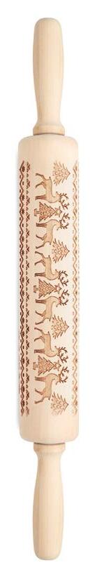 Wooden pastry rolling pin with debossed Christmas pattern. Size Ø4x42 cm