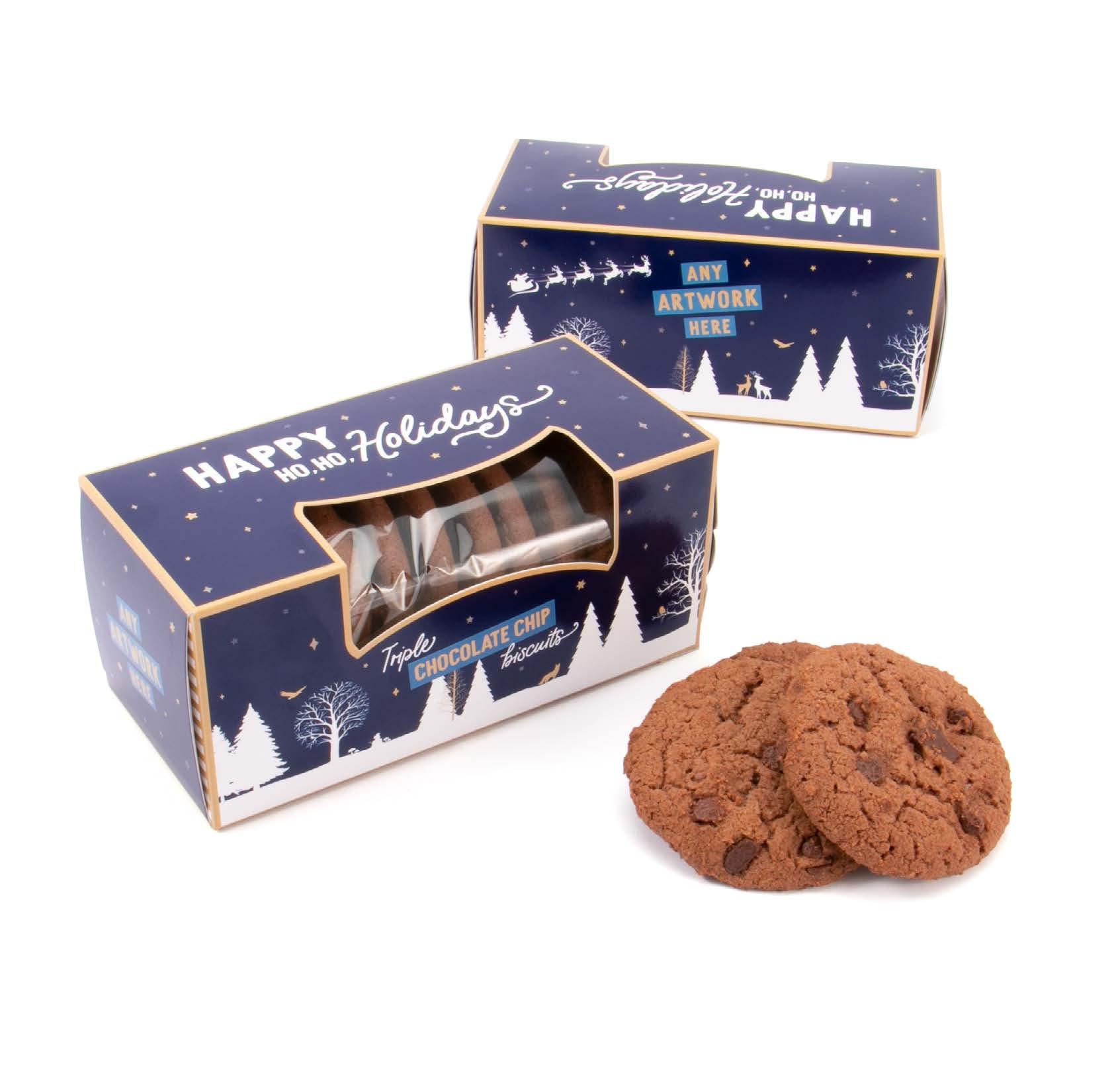 ChipChocolateBiscuits UK MADE FULL COLOUR PRINT 150 x 72 x 67mm X10 TRIPLE CHOCOLATE CHIP BISCUITS When it comes to the crunch, these delicious, dunkable teatime treats make the perfect seasonal gift. 21