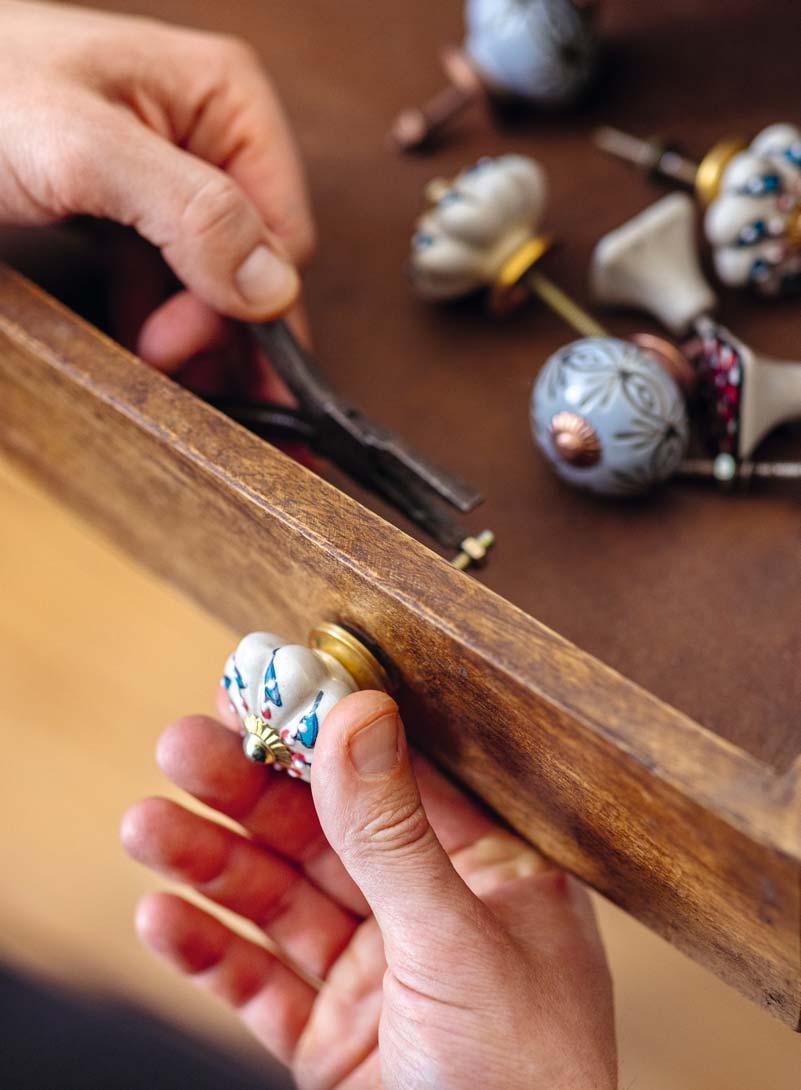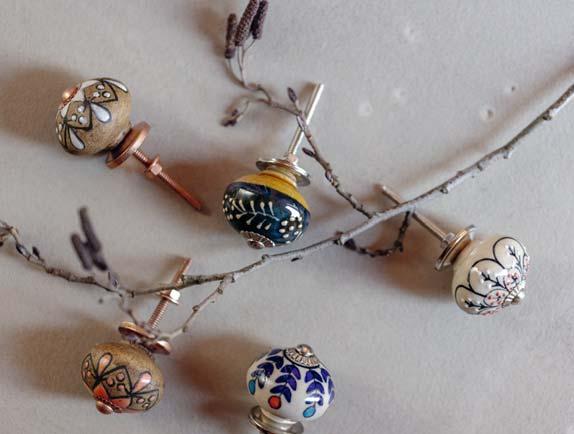 Dezente Größe, knallige Farben und klassische Formen. Handbemalte Knäufe, passend zu den Haken (S. 132), peppen die Auswahl zusätzlich auf!