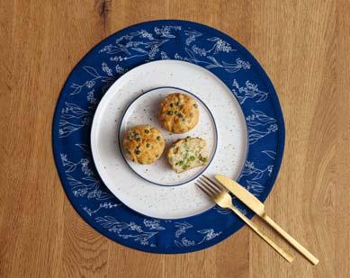 dezentem, blauem Rand besticht durch elegante Zurückhaltung und lässt Speisen und Getränke stilvoll wirken.