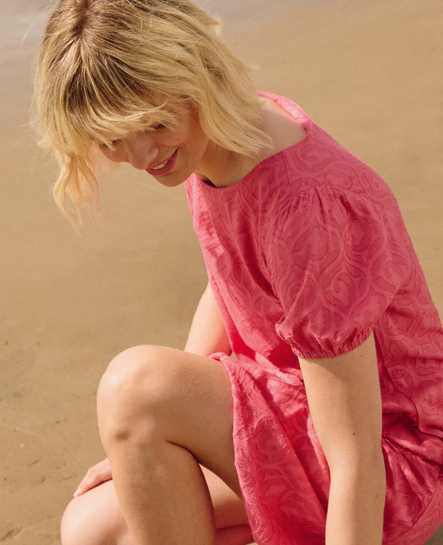 cotton jacquard batiste, a fabric that combines the delicate lightness of batiste with the intricate texture of a jacquard weave.