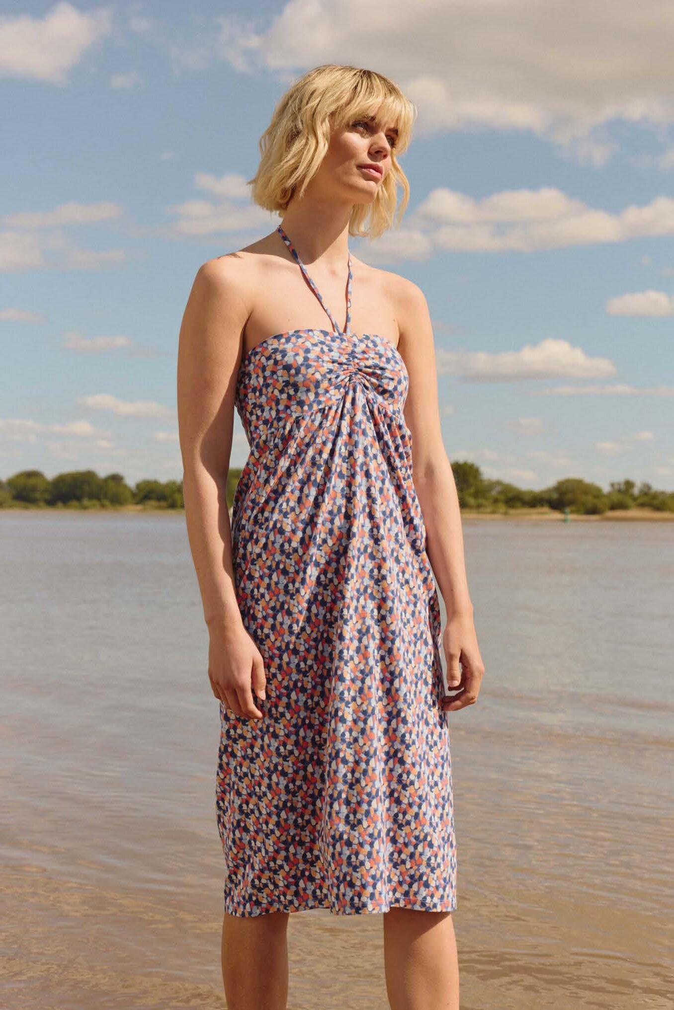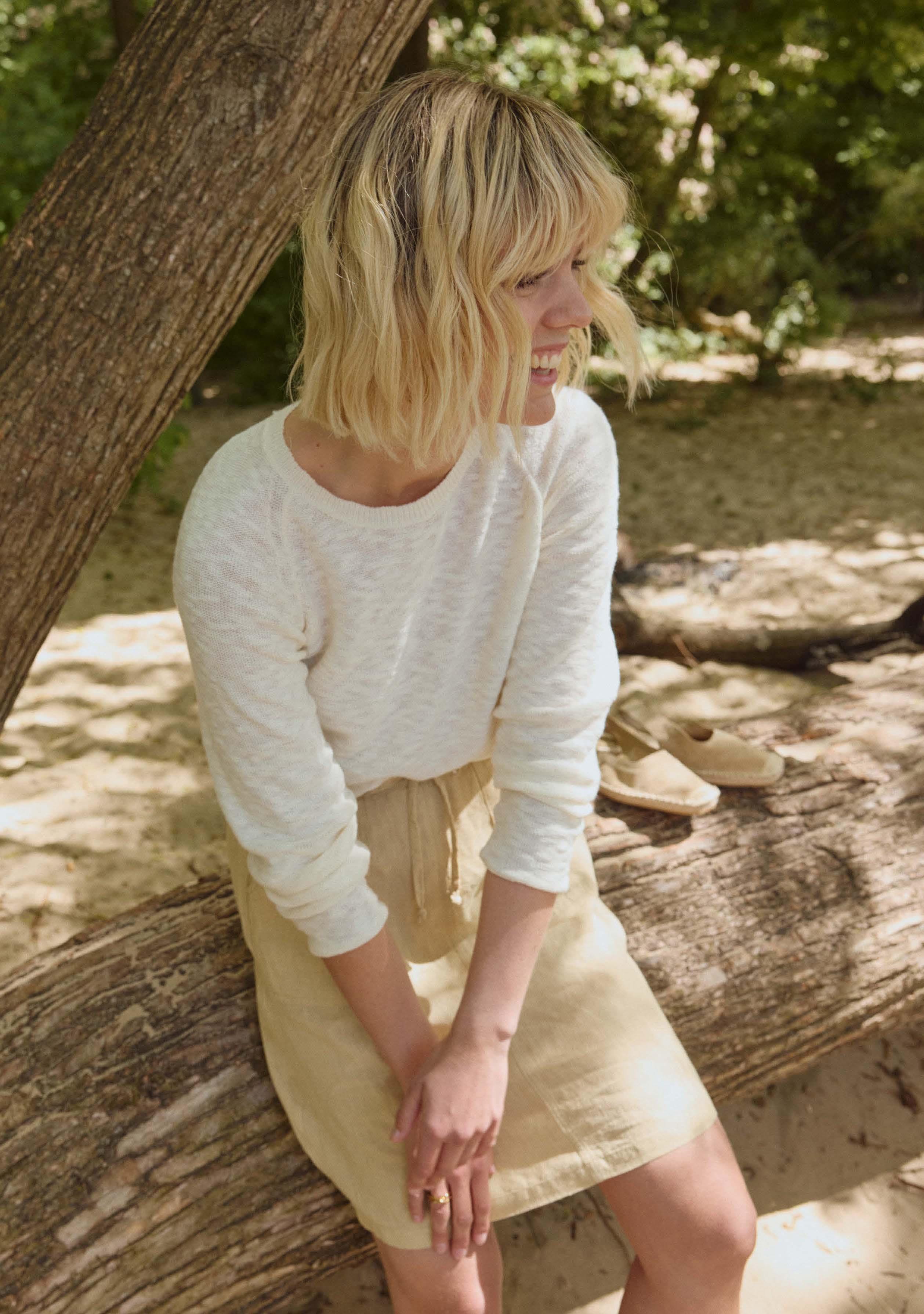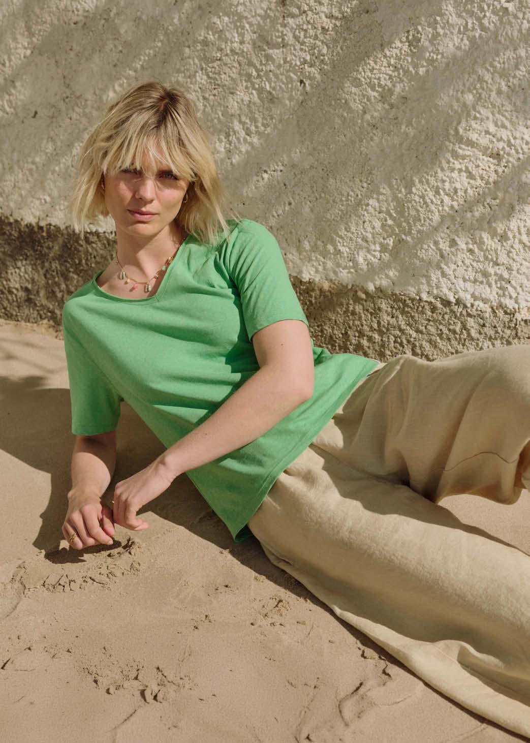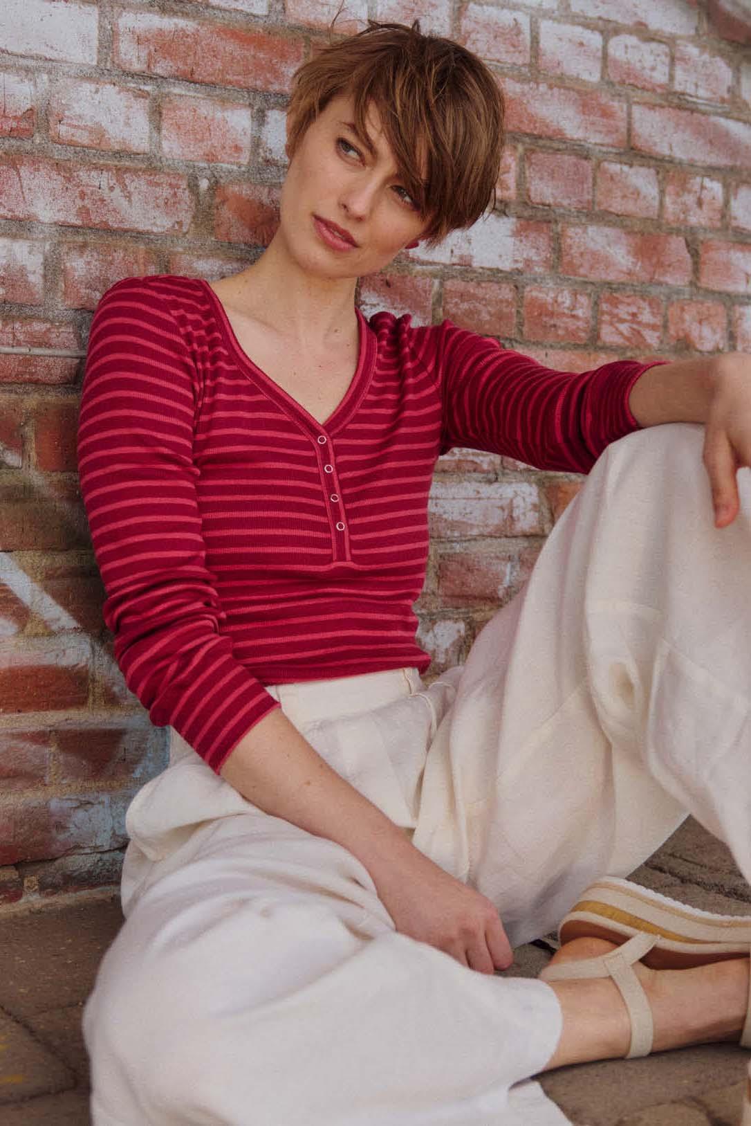 Already the yarn is dyed to provide the summery stripes optic while knitted into this light yet cosy fabric. TENCEL™, made from sustainably sourced wood pulp, is known for its environmentally friendly production process. It is biodegradable and requires less water and