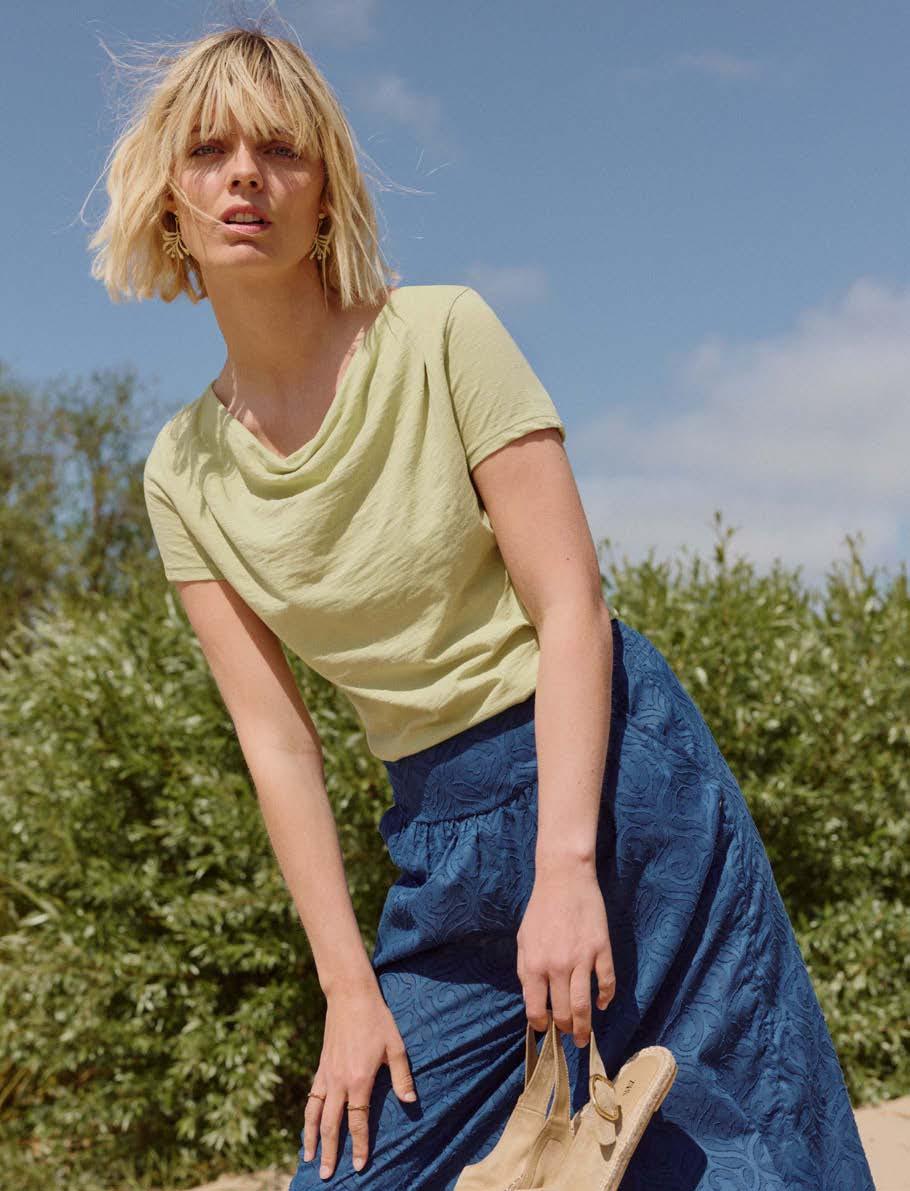 Discover high-quality materials such as linen, jacquard batiste, brodery anglaise, muslin, slub knit and stretch denim as well as the latest trend colours and innovative prints that are perfectly matched to the coming season.