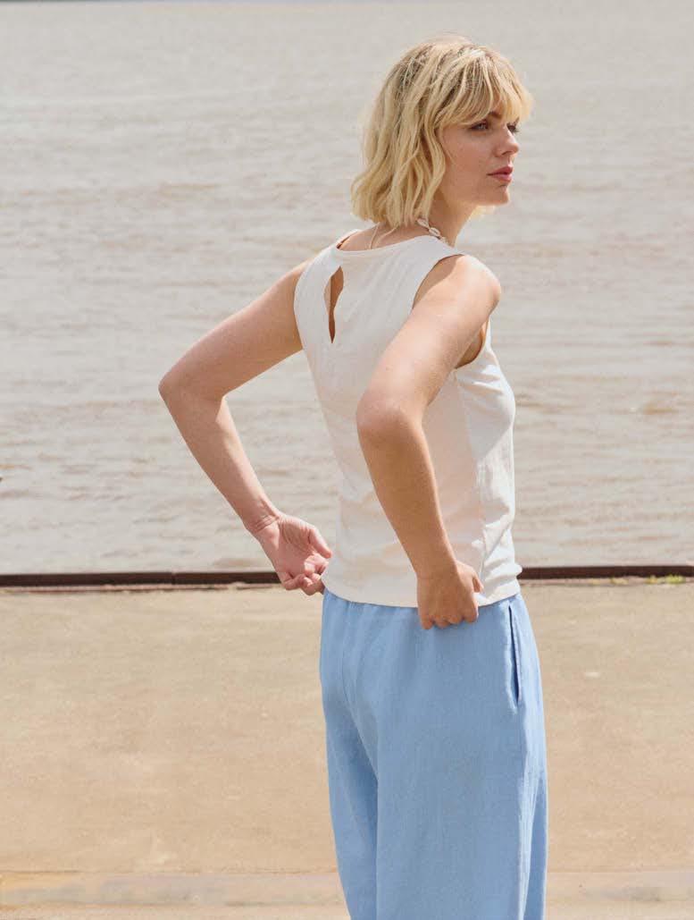Gefärbtes Garn ergibt die sommerliche Streifenoptik in diesem TENCEL™, hergestellt aus nach-