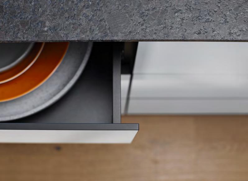 Thin fronts best bring out the slimline design of LEGRABOX and MERIVOBOX drawers. Fixing positions remain the same so fronts can be assembled in next to no time.
