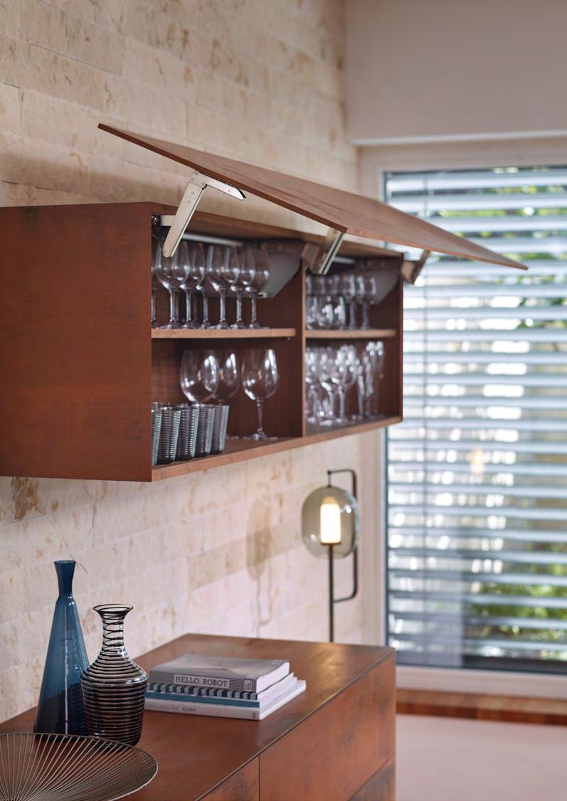 Our fixing system EXPANDO T for thin fronts from 8 mm is suitable for many materials and even allows for exceptional design ideas. Surprise your customers with customised furniture. MDF