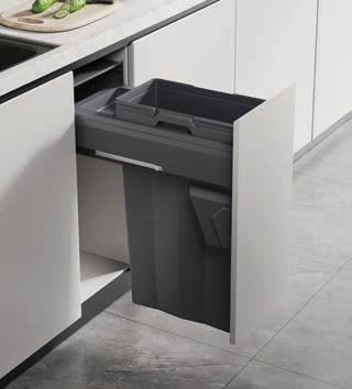 Crafted for smooth operation with over-extension runners, the Kia Ora VITA bins boast a sturdy metal lid and come in sizes suited for carcases ranging from 300mm to 600mm, with capacities ranging from 32L to 94L.