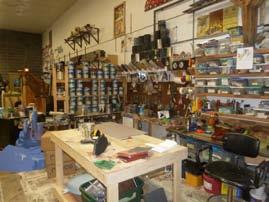 The scene and paint shop is at the same floor elevation as the main stage. Access between the shop and the stage can be via a common “rolling” plaza, or by way of matching loading docks-raised platforms utilizing trucks or trailers for transport.