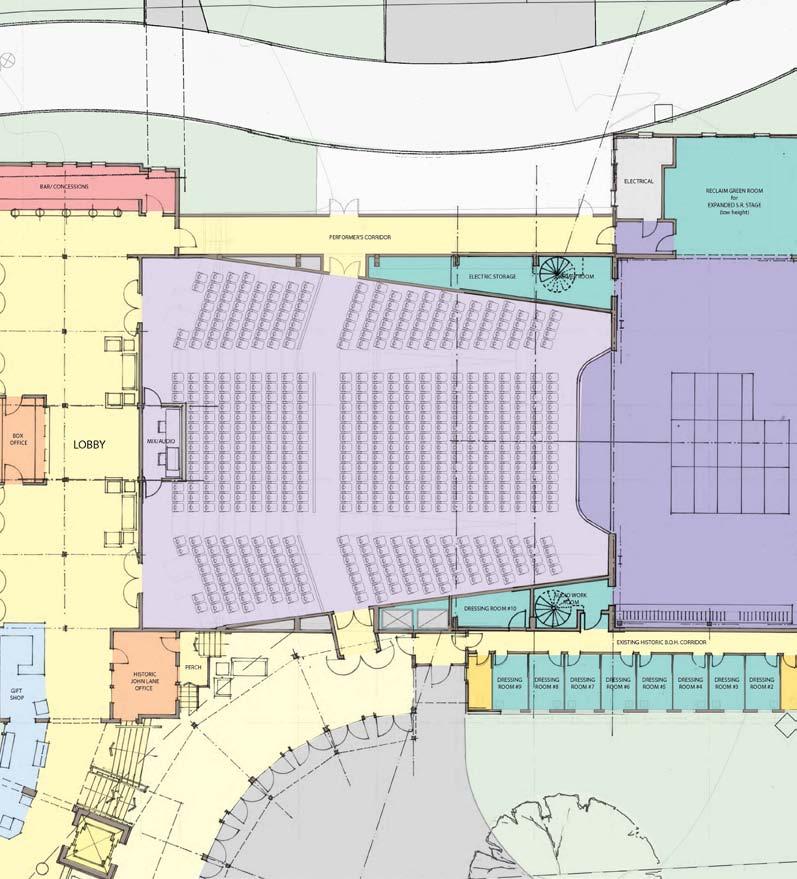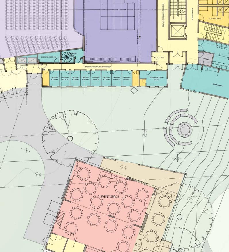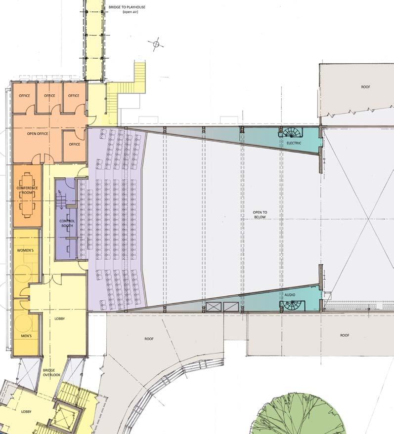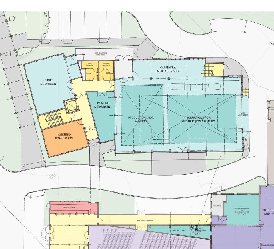 • New more conveniently located prop and scenery storage, replacing the storage currently housed on the second floor of the Playhouse