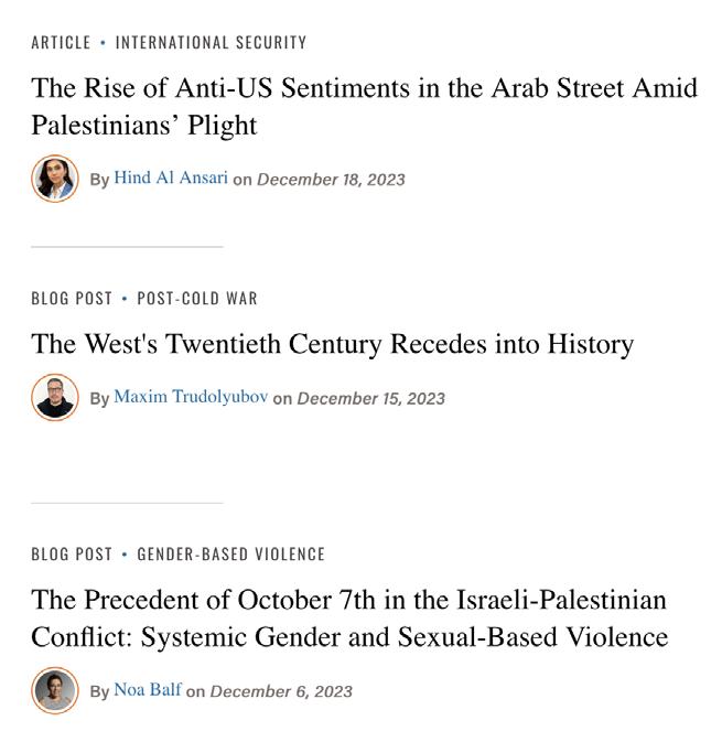 The Middle East Program focused on the Palestinian-Israeli and Arab-Israeli arena with research, analysis, and discussions on the Hamas-Israel War, its implications for US national security interests across the region, and impact on the Abraham Accords. It launched its flagship report on Women and Entrepreneurship in the MENA region, and participated in the Erbil Forum in Iraq and the Doha Forum in Qatar. This year saw the first cohort of the Agents of Youth