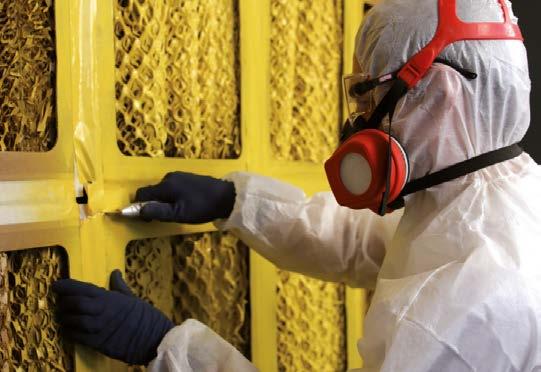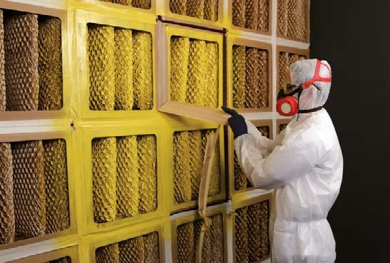 Der PC Pleat kann nach dem Baukastenprinzip gewechselt werden. Das bedeutet, dass die Filterwand in kleinere Fächer unterteilt ist, die separat gewechselt werden können. Eine Spritzwand ist in der Mitte am stärksten mit Overspray belastet. Durch den modularen Wechsel werden nur die Abschnitte gewechselt, deren Filter vollständig geträngt sind. Das bedeutet enorme Einsparungen bei den Filterkosten.