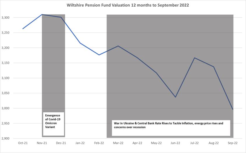 Since the start of 2022, global economic volatility, rising inflation, the war in Ukraine and subsequent rising interest rates have led to a decline in the value of assets for Wiltshire Pension Fund. Valued at just over £3.3bn at the start of 2022, the investments have fallen to just over £3bn at the end of October 2022.