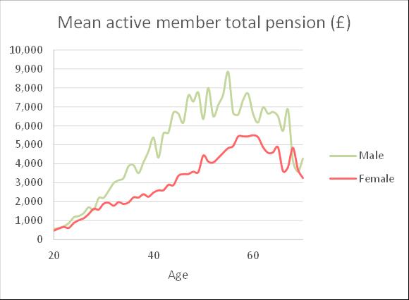 A chart of mean total pension for males and females by age is shown below.