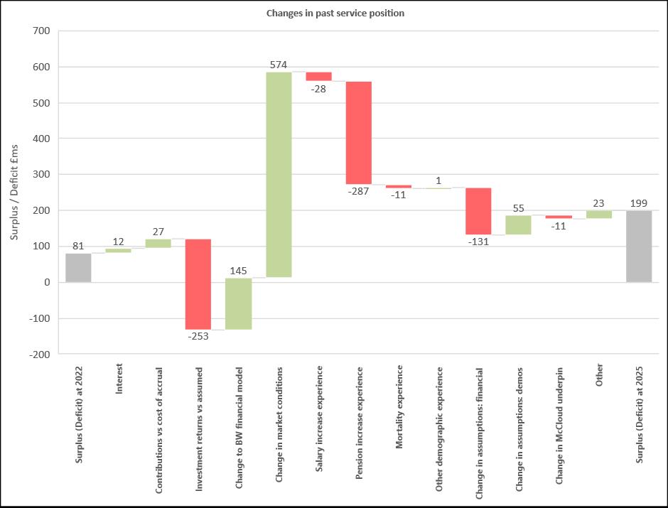 As part of the 2025 valuation, we calculated each member’s liabilities which includes an allowance for the McCloud underpin for eligible members as determined by the remedy regulations. The liabilities calculated as part of the 2025 valuation reflects the fact that eligible members may receive a pension uplift at retirement if their benefits would have been higher had they continued to accrue service in the discontinued final salary scheme until 31 March 2022.