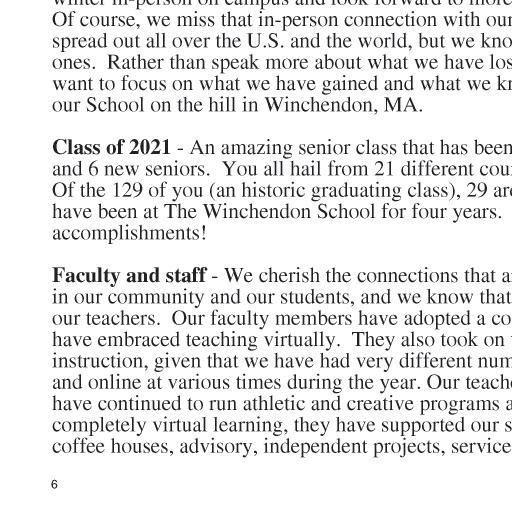 The Winchendon School 2021