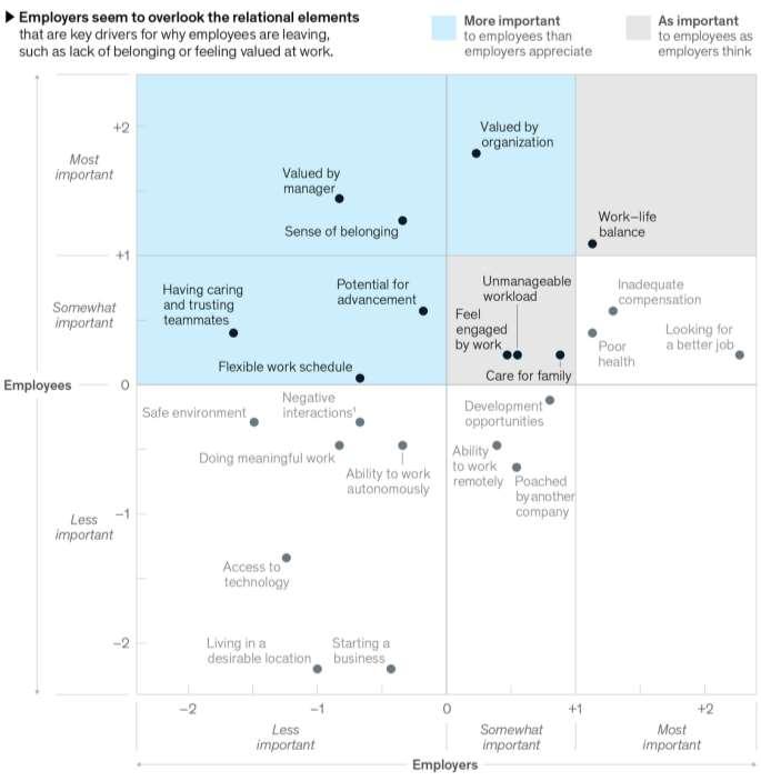 • McKinsey found a significant mis-match in the factors that are important to employees versus what employees think is important.