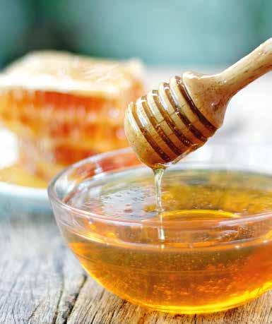 telles que le diabète. Mais qu’en est-il des vertus curatives du miel ? Soulagetil réellement la toux et le rhume ? Selon les spécialistes, c’est tout à fait possible grâce à ses quelque 200 composants, dont la teneur varie d’un miel à l’autre. Le miel formerait une couche protectrice apaisant l’inflammation au niveau de la gorge, mais son efficacité n’est pas scientifiquement prouvée. Ainsi, certaines études suggèrent que le miel utilisé à des fins médicales présenterait un effet antibactérien. En effet, sa teneur élevée en sucre, principalement du fructose (sucre de fruit) et du glucose (sucre de raisin), capte l’humidité de la plaie, privant ainsi les bactéries de leur milieu liquide. De plus, le miel possède un pH compris entre 3,5 et 4,5, créant un milieu acide dans lequel les bactéries ne peuvent se développer. Bien que le miel soit reconnu pour ses propriétés curatives en cas de blessures super ficielles, il n’est pas considéré comme un médicament, mais déclaré comme un aliment.
