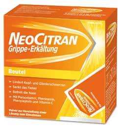 NeoCitran Grippe / Erkältung wirkt gegen Fieber, Schüttelfrost, Kopf- und Gliederschmerzen, verstopfte und laufende Nase.