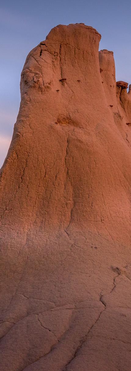 The Terry Badlands Wilderness Study Area remains as pristine and untouched today as it was hundreds of years ago. You’ll need an all-wheel drive vehicle to access Scenic Overlook and a high-profile or off-road vehicle to drive on Calypso Trail, a primitive two-track road. Along the trail, hike (bikes not allowed on single- track trails) to the impressive arches, natural bridges, pinnacles, hoodoos and scoria escarpments. Take in a stunning sunset at Scenic Overlook as the changing light reflects off buttes, banded cliffs and sandstone spires.