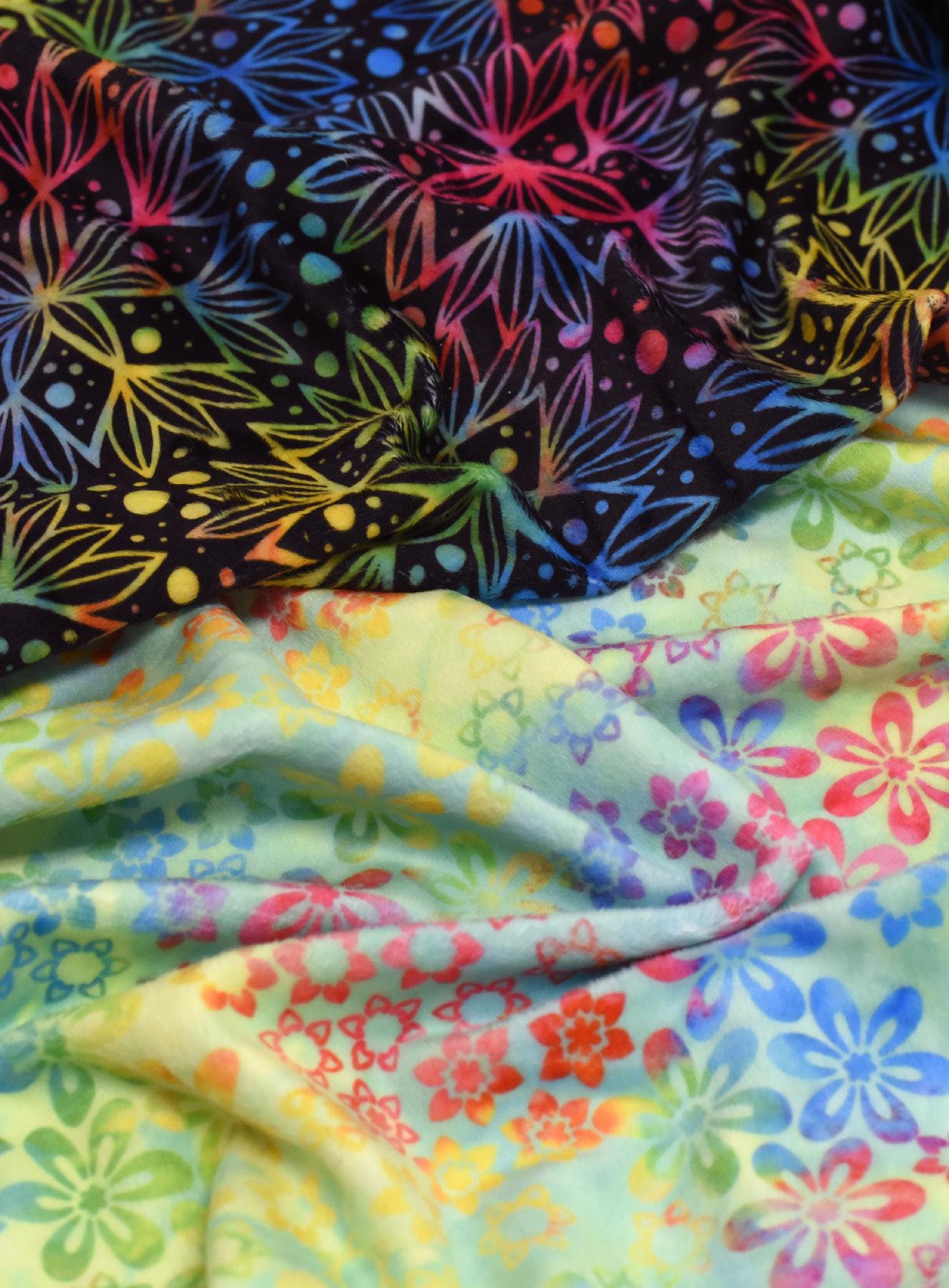 Jacqueline de Jonge’s popular batik prints are now available as three cotton wide backs and two minky prints!