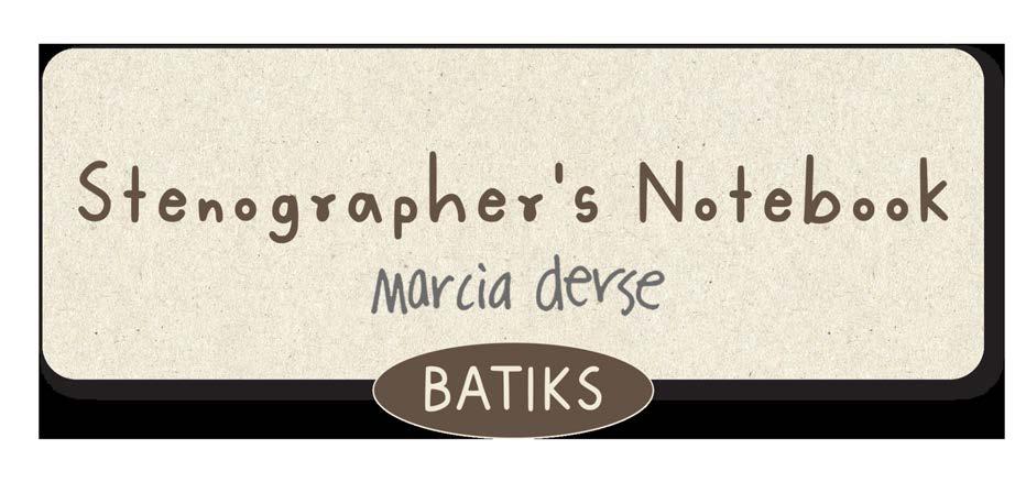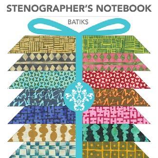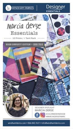WINDHAMFABRICS.COM • ANTHOLOGYFABRICS • 866.842.7631 FROM LAVA SOLIDS 100Q, 1 FQ OF EACH PRINT BELOW: 1418 Lemon 1424 Absinthe big bling - 54” x 54” A FALL 2023 SNIPPITS ASPEN by Whistler Studios 4 A VERY TERRI CHRISTMAS by Terri Degenkolb 12 BANYAN by Whistler Studios 24 BOTANICA by Sally Kelly 32 BUTTERCUP by Whistler Studios 44 CHICKEN LITTLES by Whistler Studios 52 CIRCA: POISON GREEN by Whistler Studios 60 EBB & FLOW by Essoldo Design 66 FESTIVE FOX by Whistler Studios 76 FULL MOON by Whistler Studios 86 BATTY MANTLE SCARF KIT by Whistler Studios 94 GARDEN TALE by Jeanne Horton 96 HARVEST GATHERING by Whistler Studios 108 HOLIDAY SPLENDOR by Whistler Studios 118 HOLIDAY TWINKLE by Whistler Studios 128 LUSH by Whistler Studios 136 ORCHARD & GROVE by Jennifer Moore of Monaluna 142 PETITE JEANNE by L’Atelier Perdu 154 SPARKLE by Whistler Studios 164 SUNDAY DRIVE by Katherine Quinn 168 NEW 108” WIDEBACKS by Various Designers 176 RUBY + BEE PRECUTS by Heather Ross + Annabel Wrigley 180 COLOR ME: PERFECTLY PINK by Various Designers 190 WINDHAM ESSENTIALS VOL. 9 by Various Designers 194 SPIRIT TRAIL by Windham Fabrics 206 ROAM B.O.M. featuring 2 colorways patterns by Tara Faughnan 212 MARCIA DERSE PRECUTS by Marcia Derse 218 STENOGRAPHER’S NOTEBOOK by Marcia Derse 222 NEW JDJ QUILT KITS by Jacqueline de Jonge 228