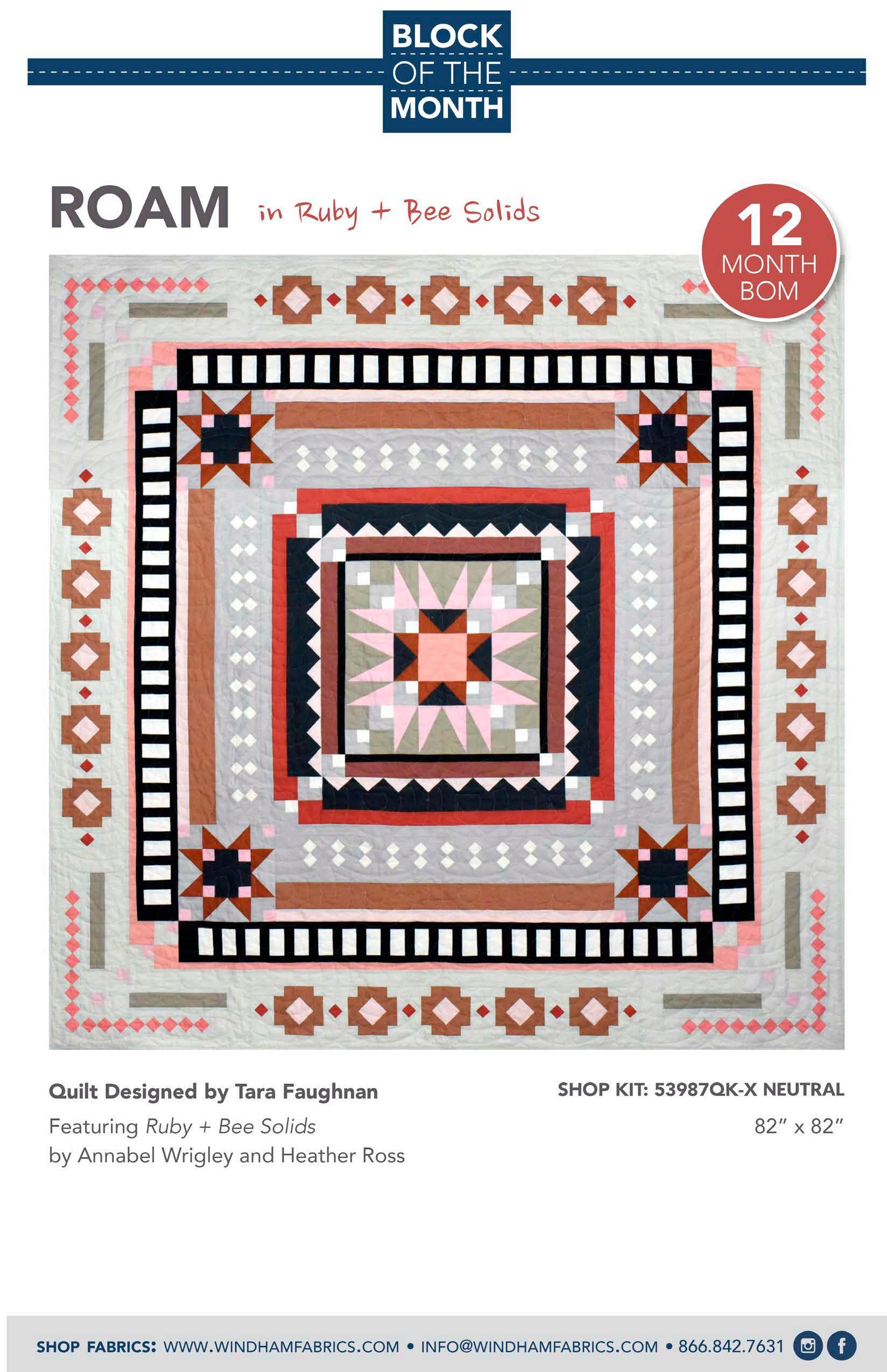 SHOP FABRICS: WWW.WINDHAMFABRICS.COM • CONTACT US: INFO@WINDHAMFABRICS.COM • 866.842.7631 ROAM Quilt Designed by Tara Faughnan Featuring Artisan Cotton and Ruby + Bee Solids windhamfabrics.com • TOLL FREE: 866.842.7631 TARAFAUGHNAN.COM BLOCK MONTH OF THE A 12 Month BOM, available in two colorways! in Artisan Cotton in Ruby+Bee Solids
