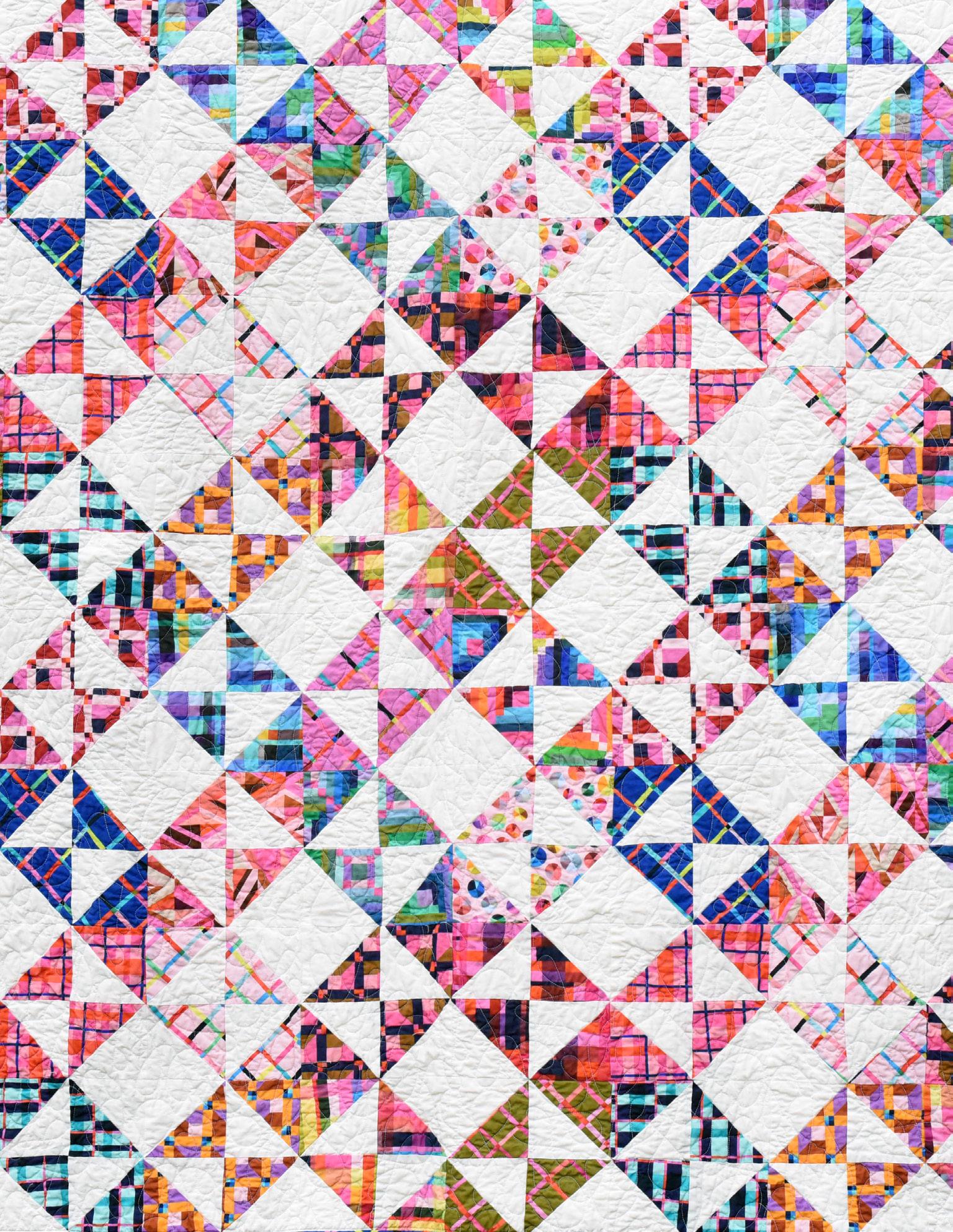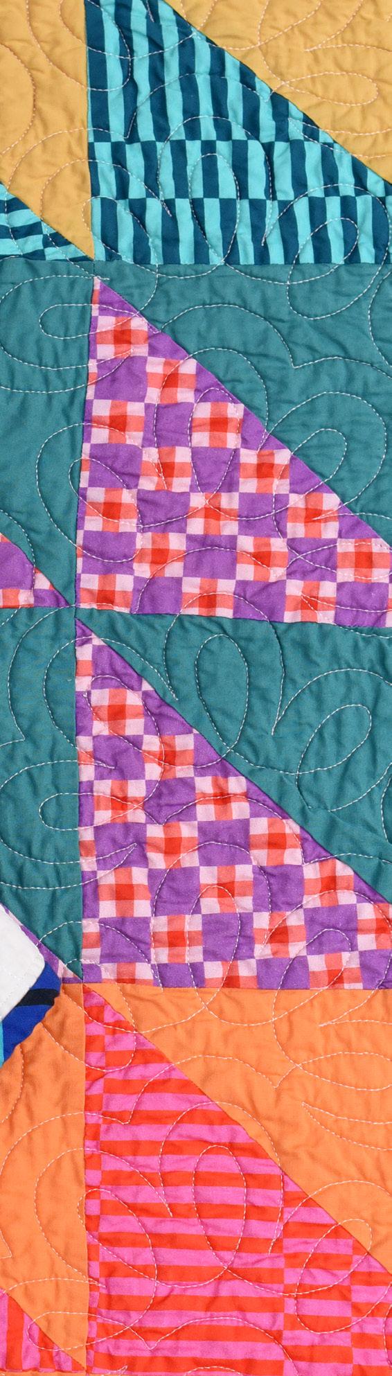 OPPOSITE PAGE: FREE WHEELING SINGLE GIRL 86-1/2” x 93” pattern: dsquilts com