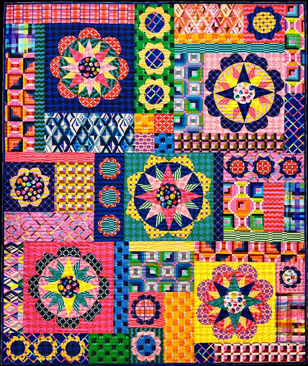 FLOWERING PATCHWORK 68” x 68” CRINKLYQUILTS.COM