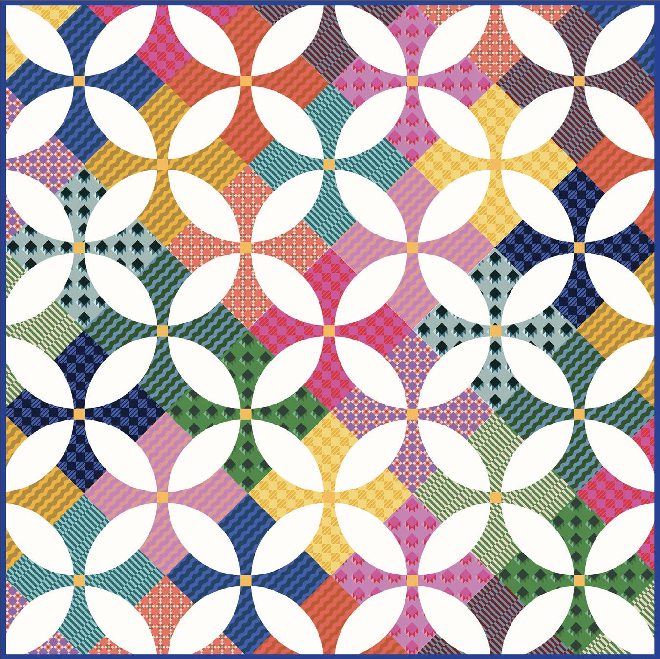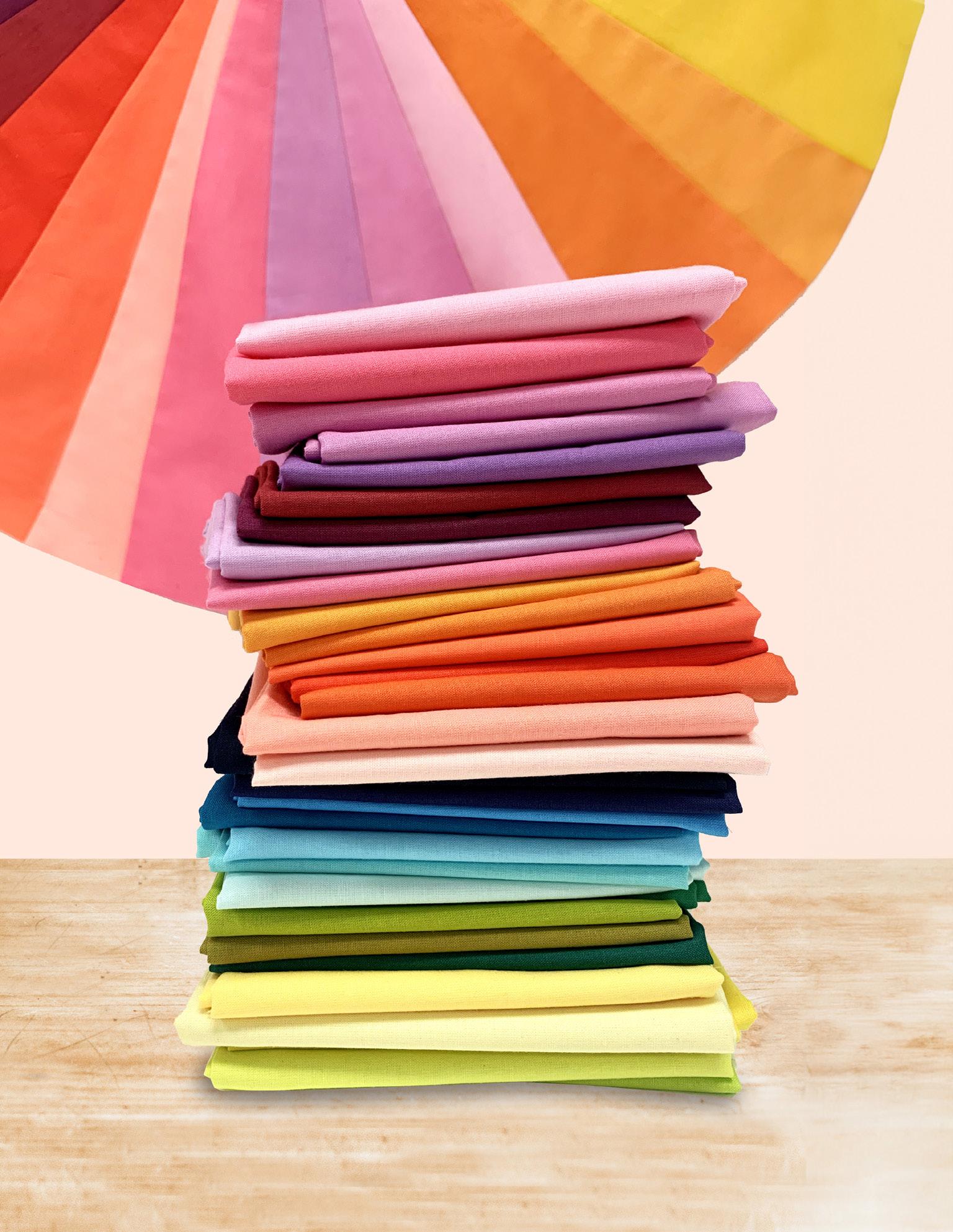 Happy Place reimagines classic quilt designs through bold modern color. Plaids, grids, log cabins and playful circles come alive in energetic layers of pinks, blues, greens and brights. The collection blends nostalgia with a fresh graphic edge, creating a joyful mix and match palette for makers who love clean lines, vibrant color and contemporary quilt-inspired design. This collection is designed to take you to your own “Happy Place”.