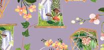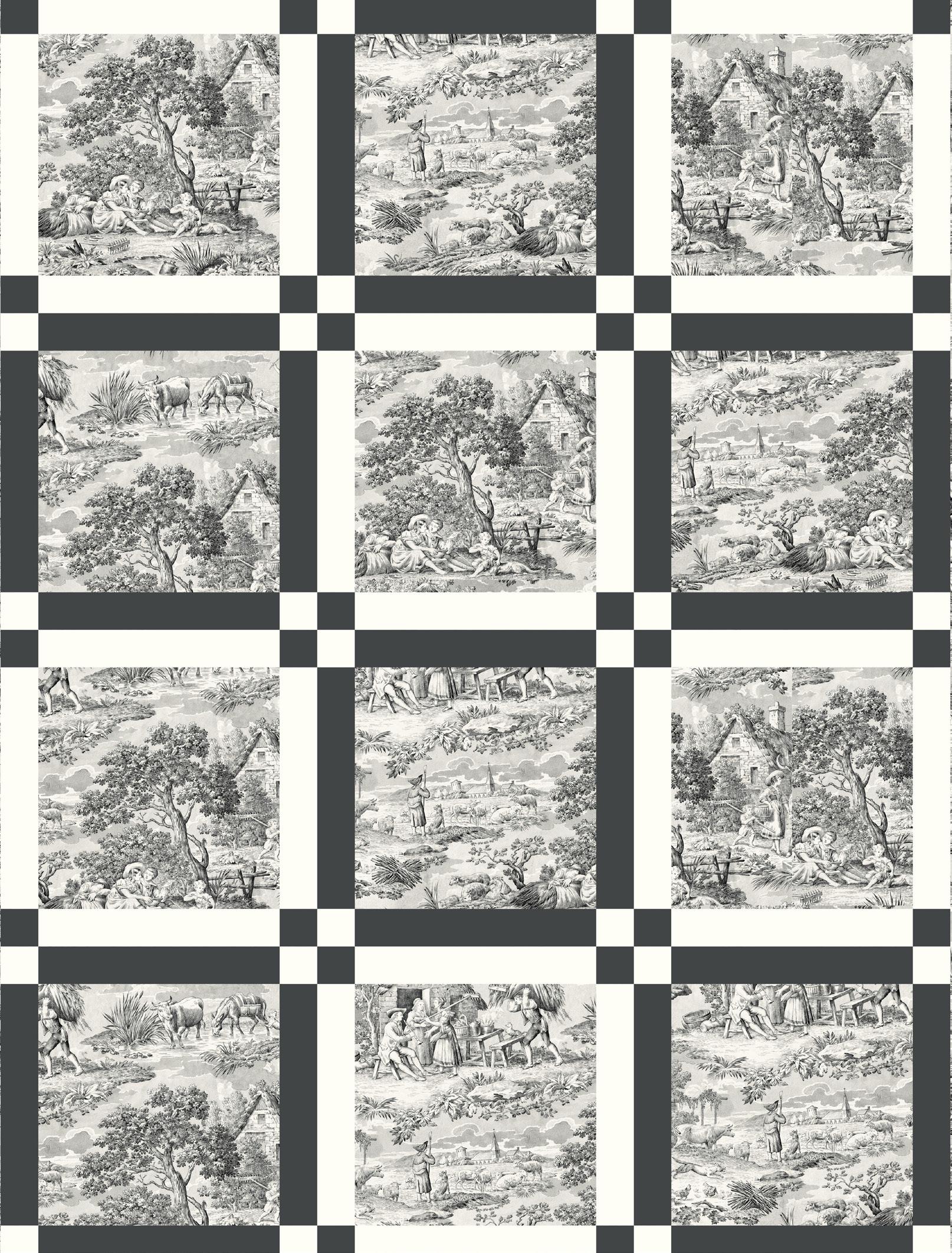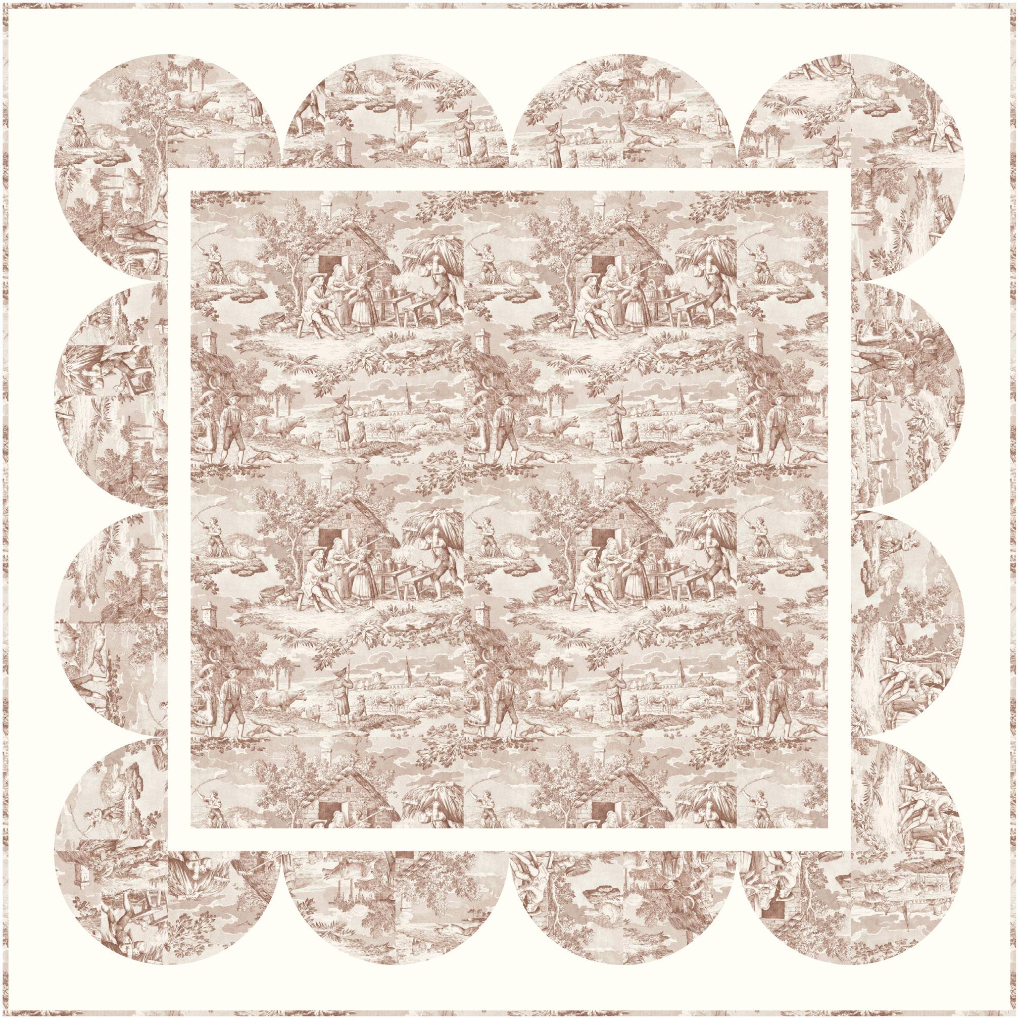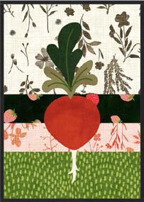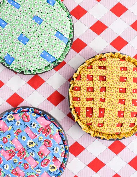 Pie Lady celebrates Americana with prints that call to mind a well-loved kitchen, the gingham tablecloth dusted with flour as dough is rolled for pies to celebrate the bounty of the harvest (and maybe garner a prize ribbon)! Sweet floral curtains frame the view of the garden, sunlight streaming in on jars of freshly canned fruits and vegetables topped with calico-wrapped lids. An apple pie cooling on a vintage rack fills the room with a mouth-watering aroma. Home-made quilted potholders, mom’s old red-handled rolling pin, and a crazy-patchwork cheater print apron complete a nostalgic polaroid snapshot capturing the joy and love of home, celebrating with family and friends.
