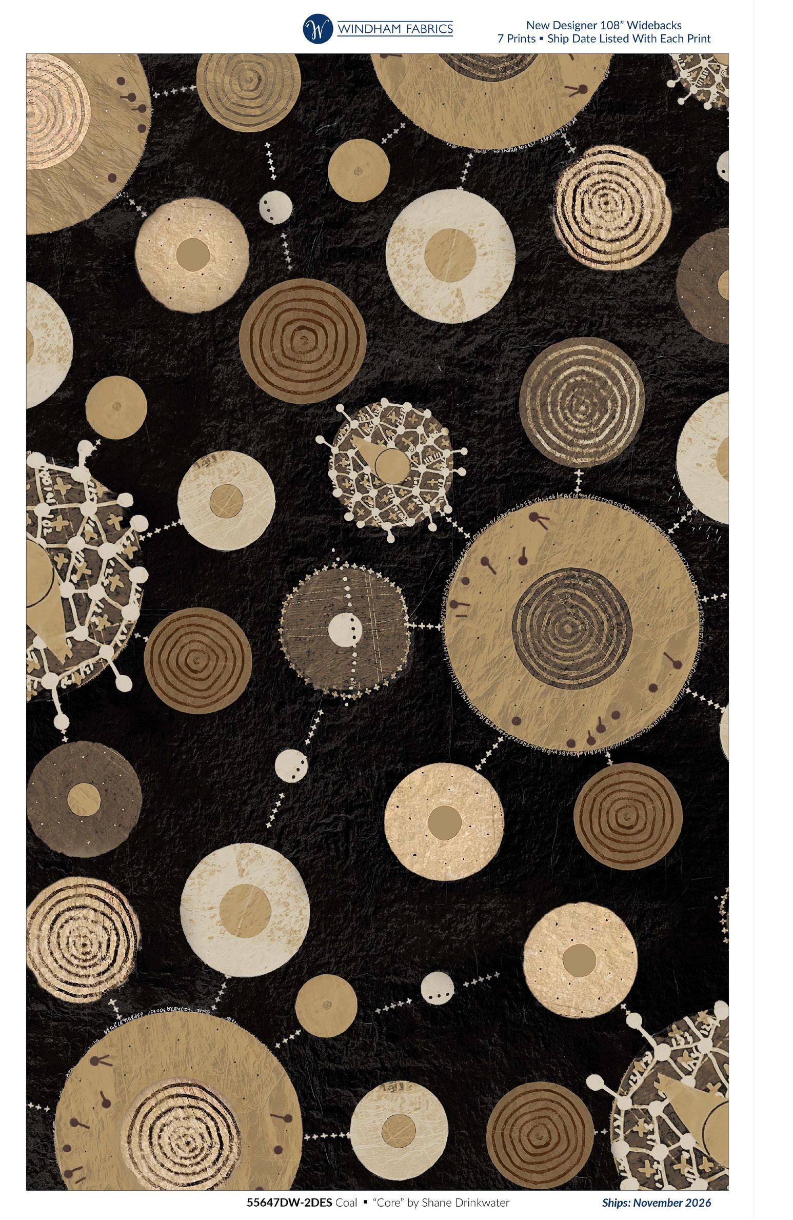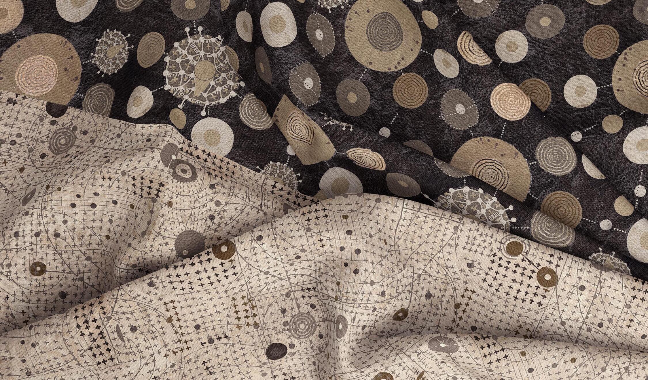 This collection explores rhythm and movement through circles, lines, and layered marks. The designs move between energy and quiet, offering versatility for both statement pieces and subtle supporting fabrics.