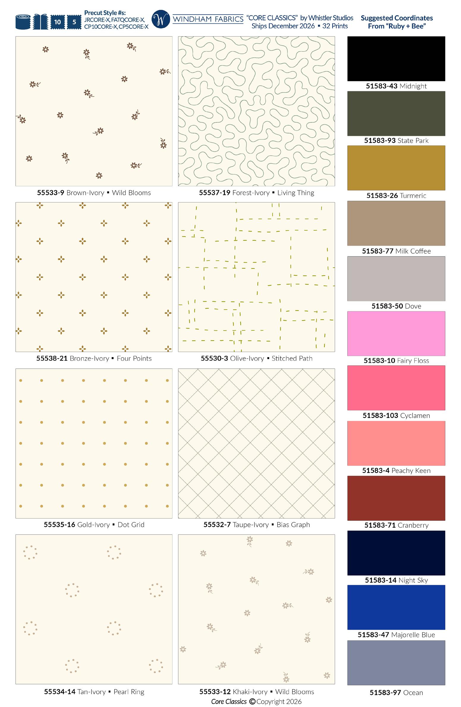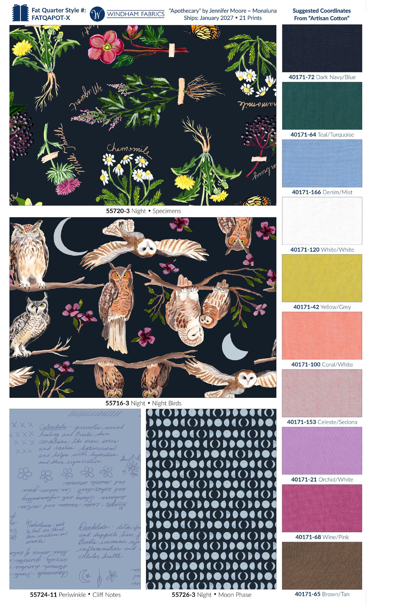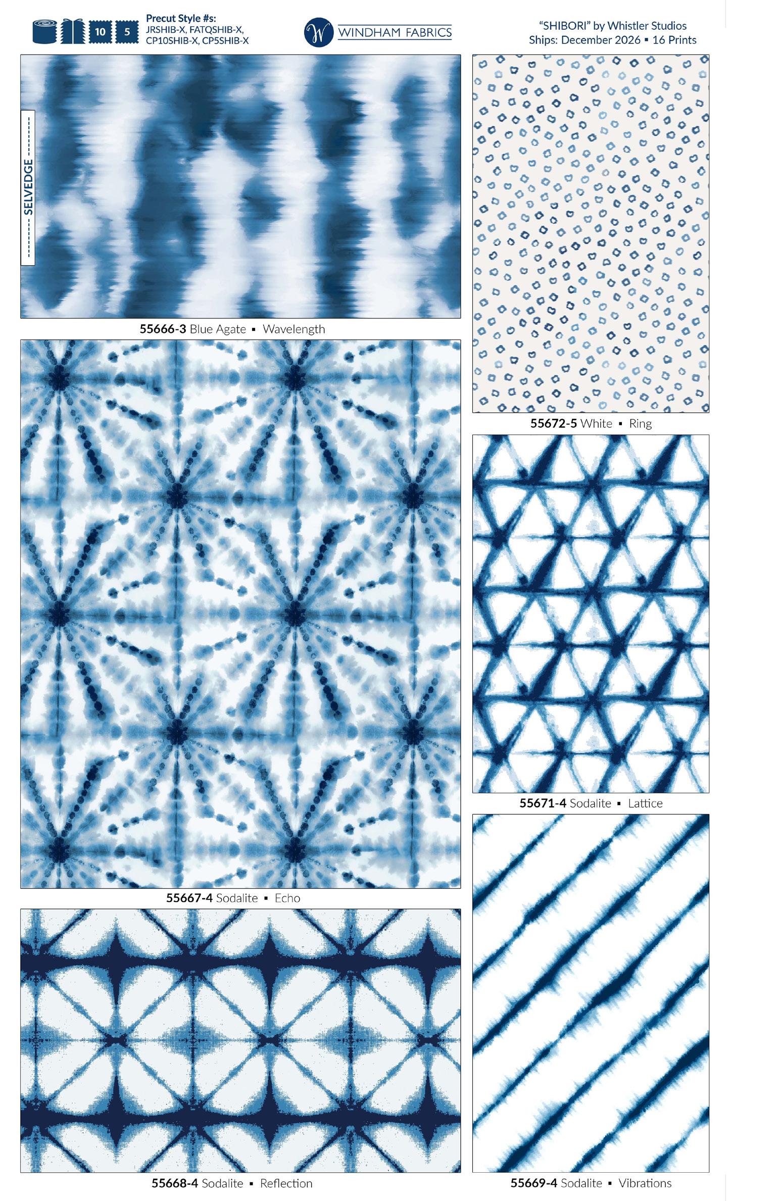 22 MOODY MOD: I • 12 OVERFLOW: I BATIKS + 1 HERO PRINT • FABRIC SHIPS: JANUARY 2027