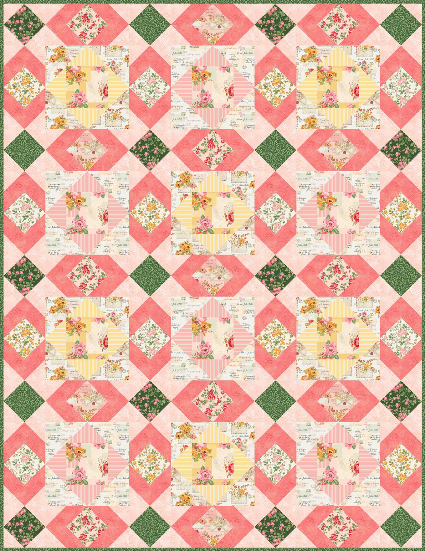 77" x 77" | by Robin Long *pattern book + ruler combo for sale: robinruthdesign.com kit for sale: windhamfabrics.com Best Day Rose