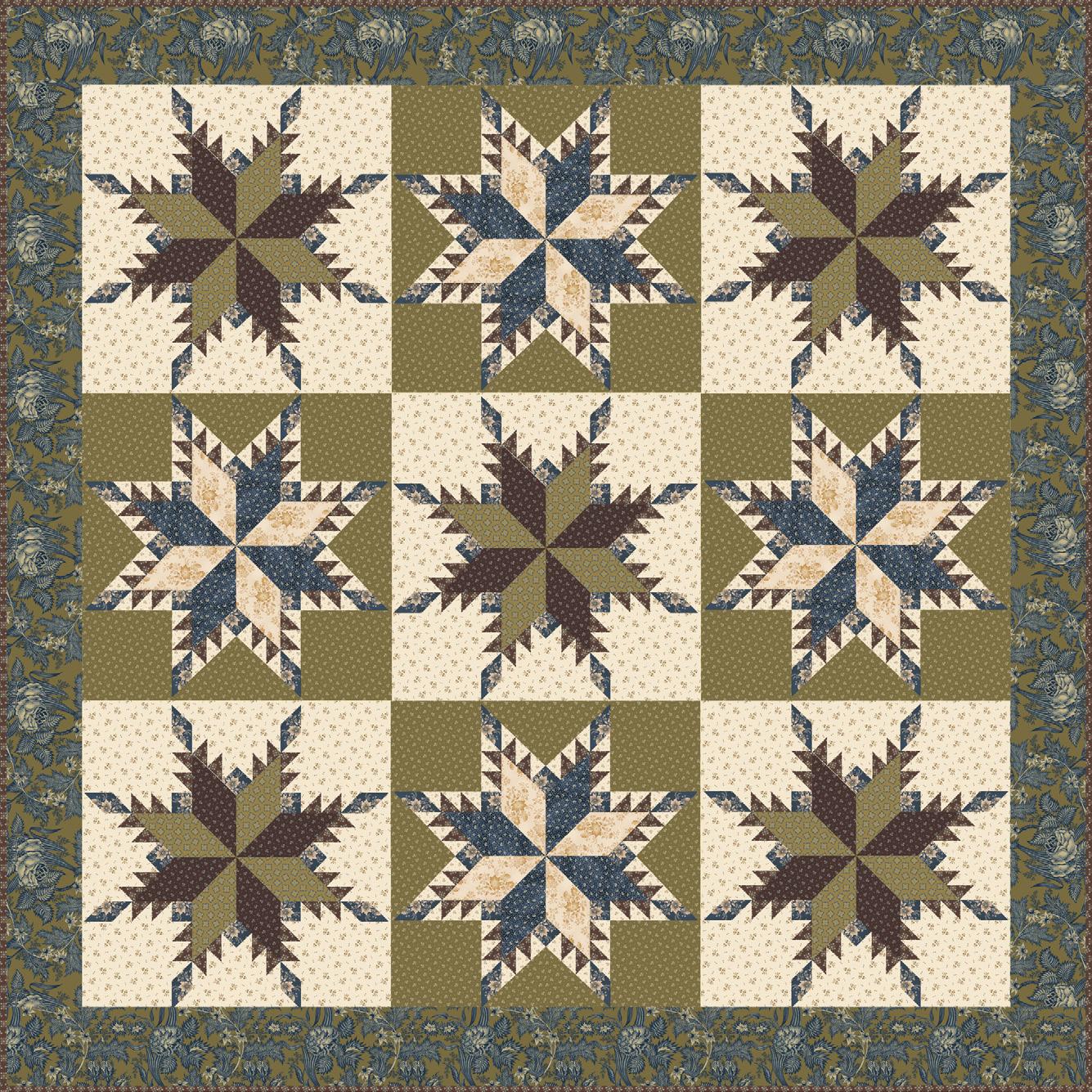 Kit includes fabric + binding. Backing fabric, ruler, and pattern book not included in kit. *Kit made using the Fat Robin 16-Point Book and Ruler Combo.