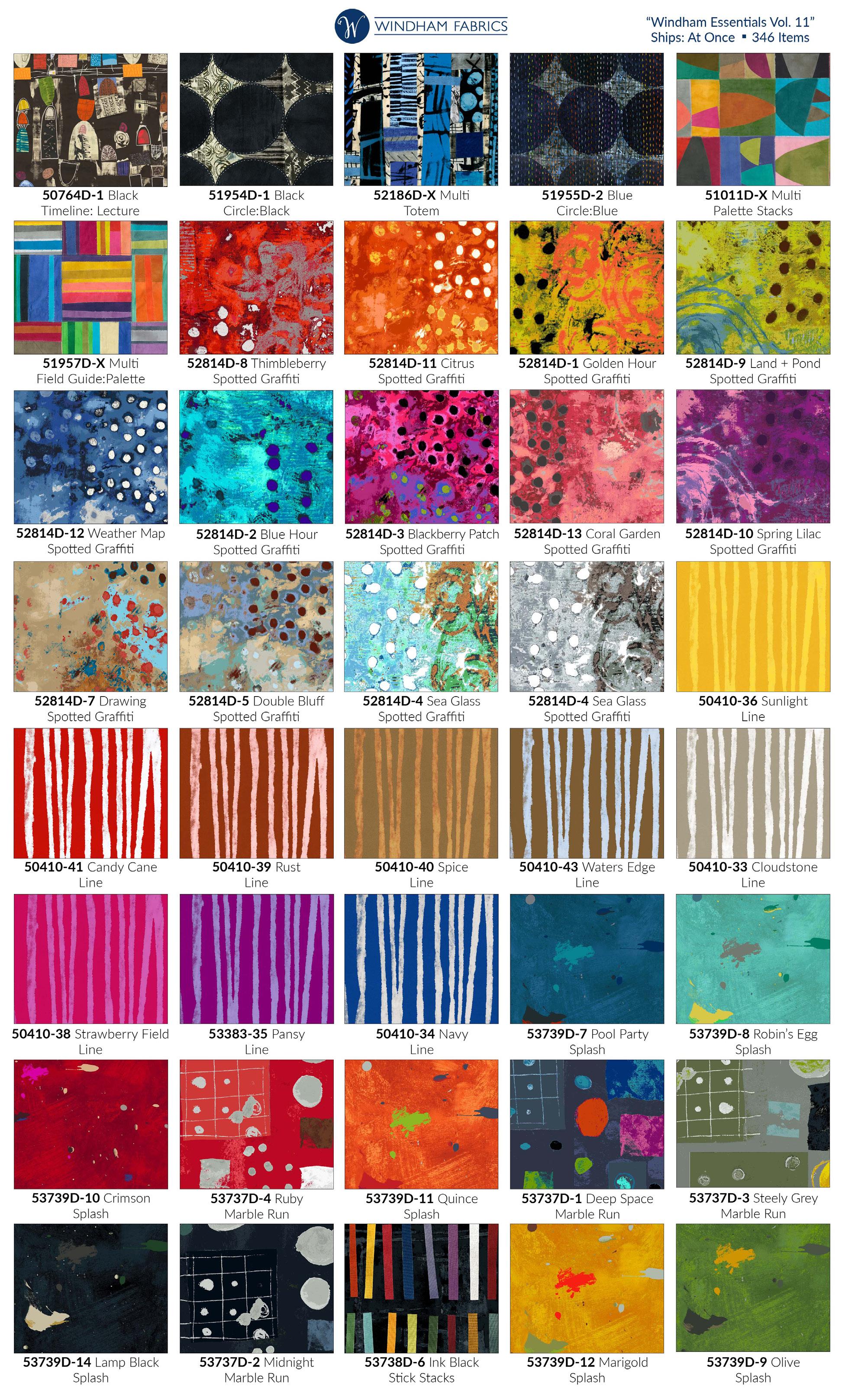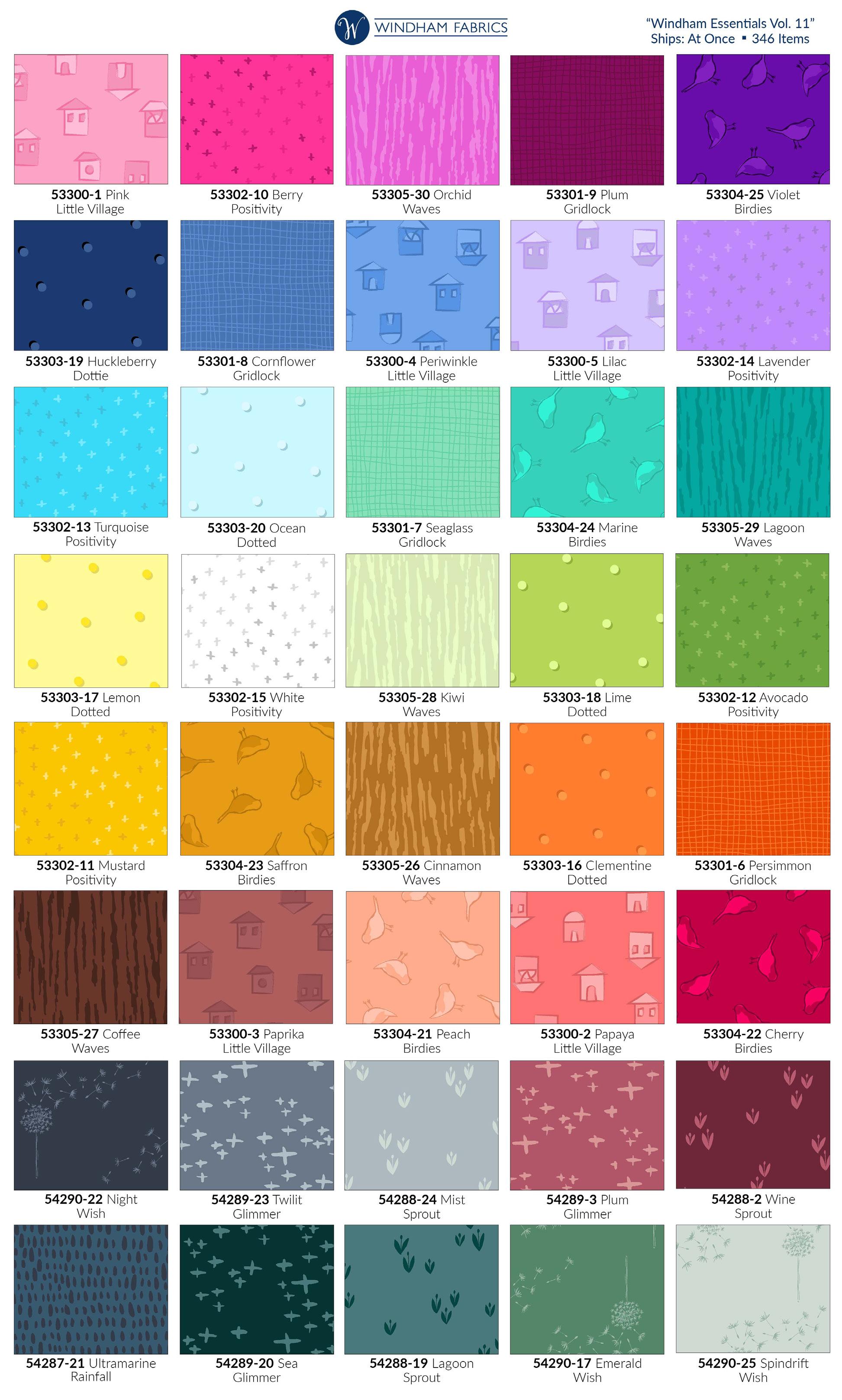 Windham and Anthology Fabrics offers over 15+ Everyday Basics collections. A great range of solids, blenders with subtle textures, variety of substrates, white on whites, some metallics and more!