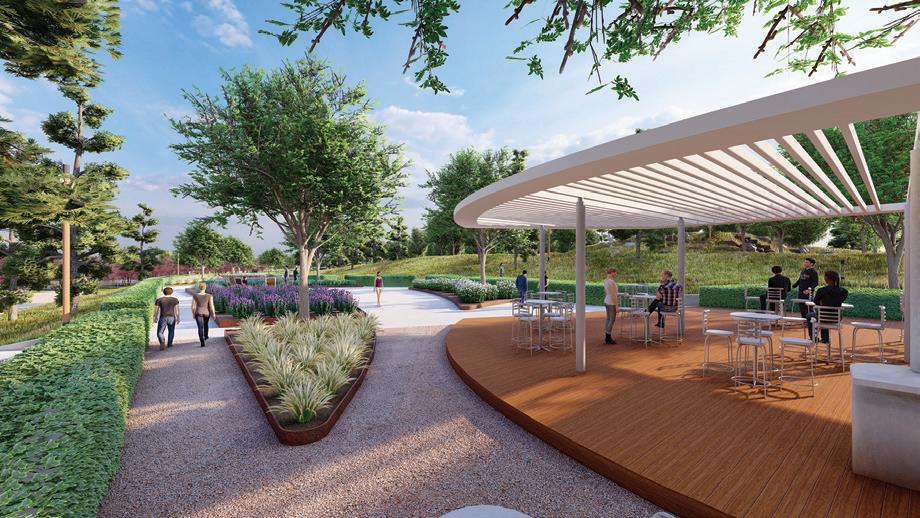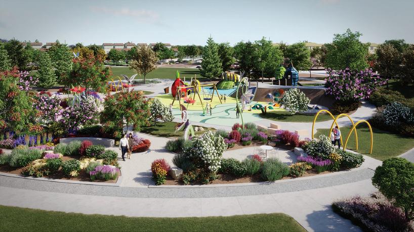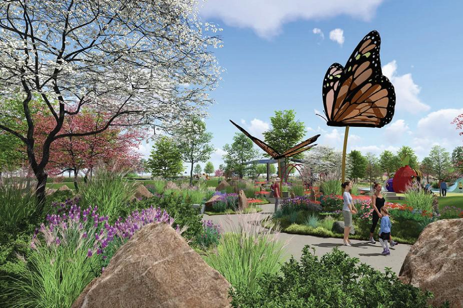 • Bu er y Park is where imaginations take ight. Adults and kids alike become six-legged adventurers discovering nature’s wonders through innovative art displays. Whimsical play structures inspired by bees, bu er ies, and nature’s pollinators bring the park’s garden to life. Featuring a dog park, large lawn, and space for exploration, it’s a place for families to connect, play, and create memories before ying home.