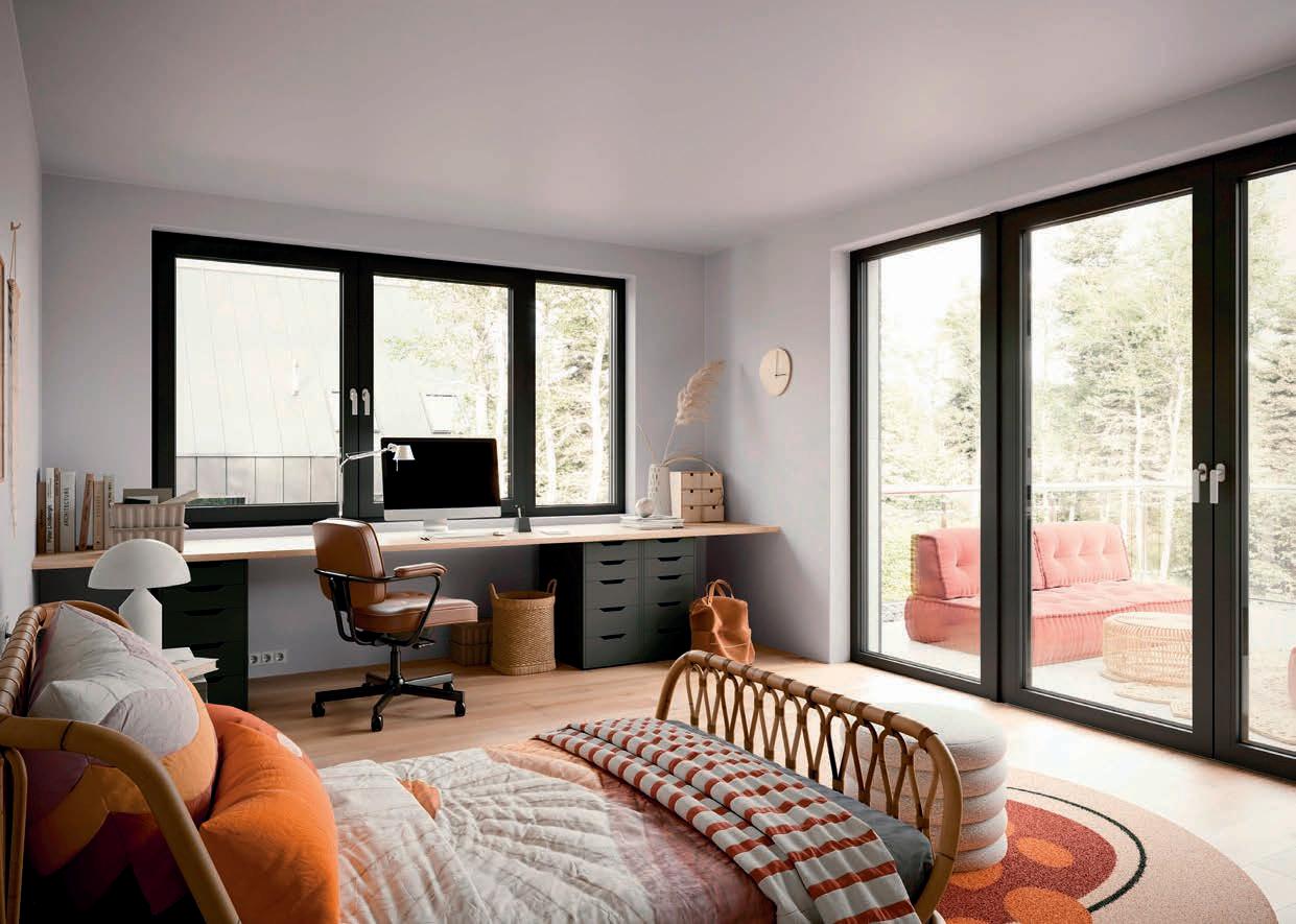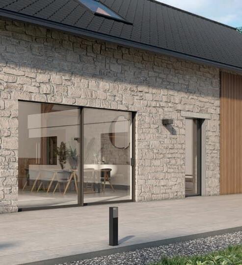 In terms of design, Design 35 stands out for the minimalism of its pro les, whose 32 mm sightlines make it possible to create large glazed surfaces crossed by vertical and horizontal lines, an e ect that is reinforced thanks to the possibility of incorporating astragal bars.