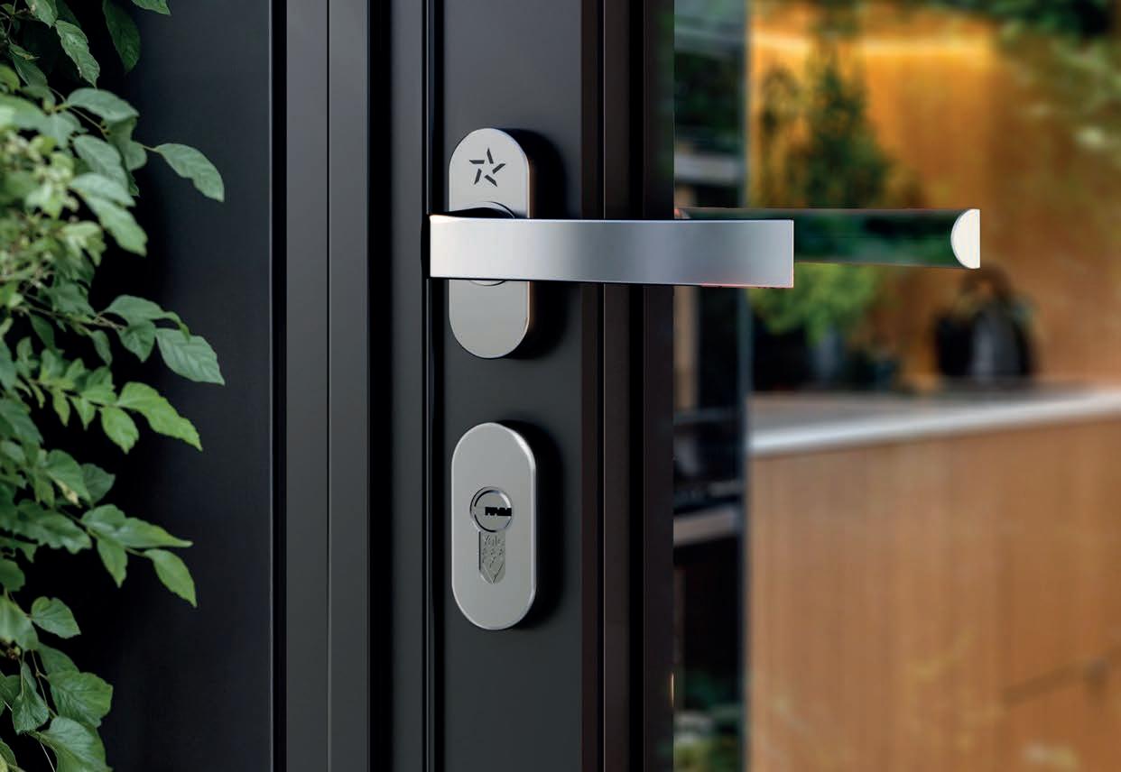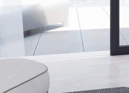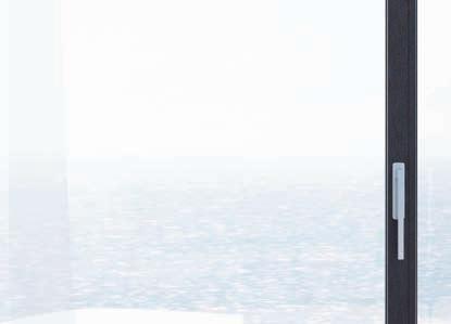 The openings in this system are designed for single or double-sash framed doors up to 1.2 m wide, 2.6 m high, and weighing up to 90 kg. Their design allows for the installation of a special 93 mm door bottom pro le with an integrated automatic dropdown seal. For complete aesthetic exibility, Design 35 is compatible with Cortizo’s Stylish range, as well as the new Line and Deco handles, available in titanium black,