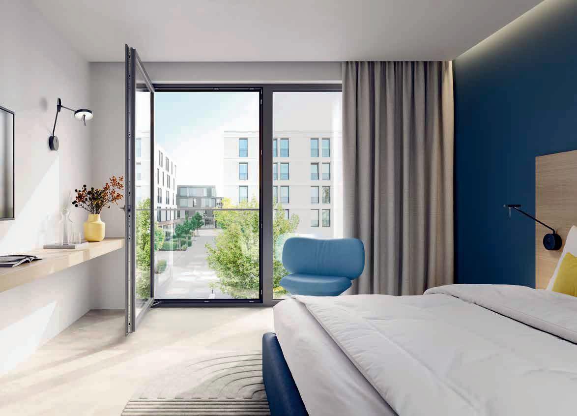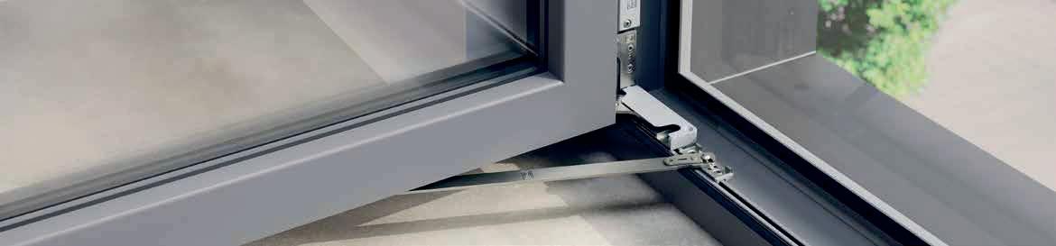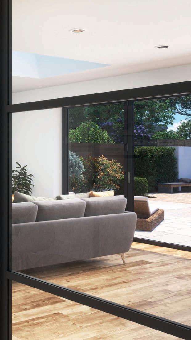 When it comes to functionality, updated compact rollers mean the door opens smoothly and slides e ortlessly with panels up to 130kg, and there is even a new half roller available which eliminates the need for a oating mullion. There is also multi-point locking as standard with optional shoot bolts for full PAS24/SBD accreditation.