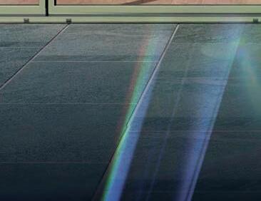 Developed over a 10-year R&D programme by ScreenLine® systems manufacturer Pellini S.p.A., Wave is a motorised shading system equipped with an ultra-thin polyester lm encapsulated between the panes of glass of an IGU. Two versions are available – a white ‘dim out’ option designed to provide subtle shading and a degree of privacy or a blackout blind, which is black on the inside and grey externally.